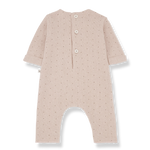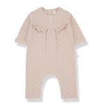 The Margot Jumpsuit in Nude features a delicate print and soft fleece fabric. Designed for comfort with a touch of sweetness.