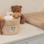 Keep your baby's essentials organized and within reach with this versatile Bouclé storage basket from Jollein. Perfect as a diaper basket, nursery organizer, or changing table basket, this practical storage solution is made of soft Bouclé fabric. Measuring 14cm high with a diameter of 18cm, it features a cute 'bear-hug' logo on the front, adding a touch of style to your baby's room. Use it to store baby care items like a manicure set, brush, thermometer, and more, or as a nursery storage for small toys in the living room. Combine it with the large storage basket Bouclé for even more storage space. Keep your baby's nursery tidy and stylish with this versatile diaper organizer.