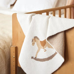 We are completely in love with this sweet blanket from the Nostalgic Ride collection. Decorated with rocking horses and made of wonderfully soft knitted fabric, this blanket fits perfectly in any child's room. You’ll match this blanket perfectly with the ruffle sheet, the slub sheet or the accompanying Nostalgic Ride sheet.