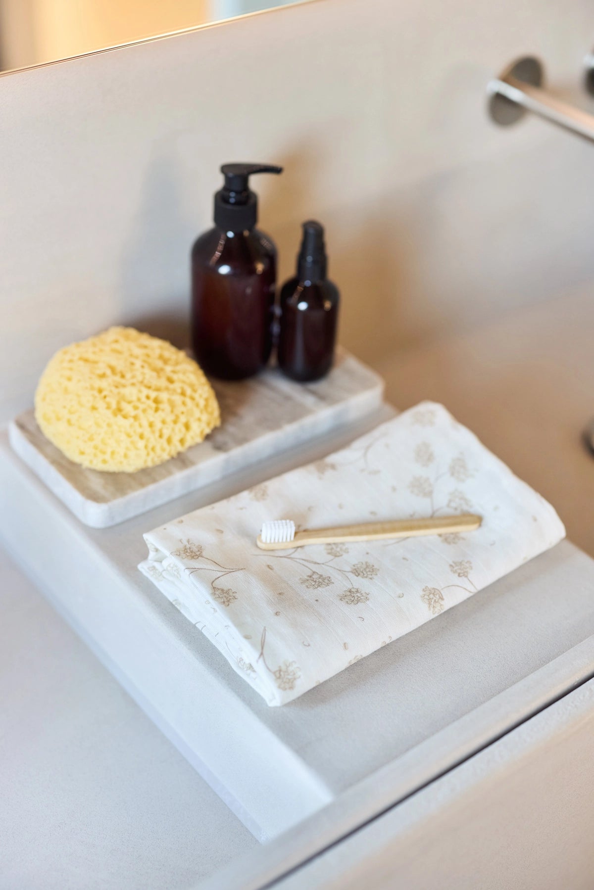 These soft muslin cloths are essential for your little one's care. They absorb moisture well and feel wonderfully light. Ideal as a burp cloth, towel, or changing mat. The sweet Leafy Dreams print with playful leaves brings a cozy and natural vibe.