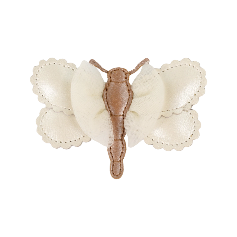 You li-believe in magic! Add a touch of blooming nature to your little one's outfit with the Alja Clip. Carefully crafted from 100% premium metallic leather, this charming clip features delicate tulle wing details reminiscent of a dragonfly's iridescent wings. Pin it to her updo, ponytail, dress, or shirt.