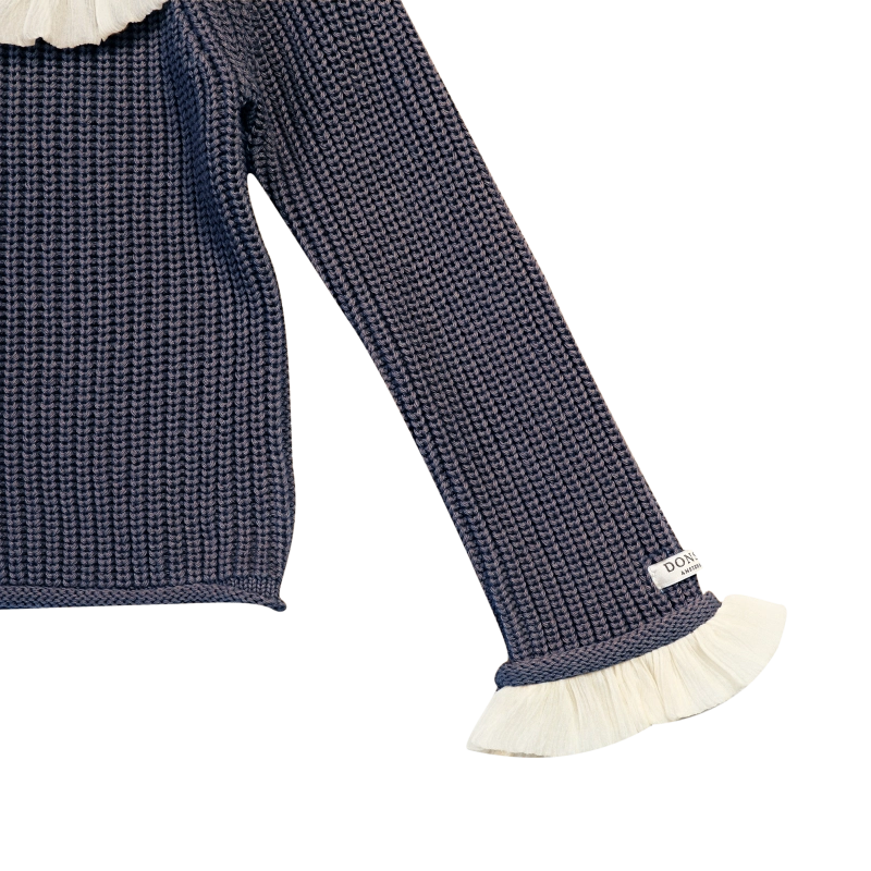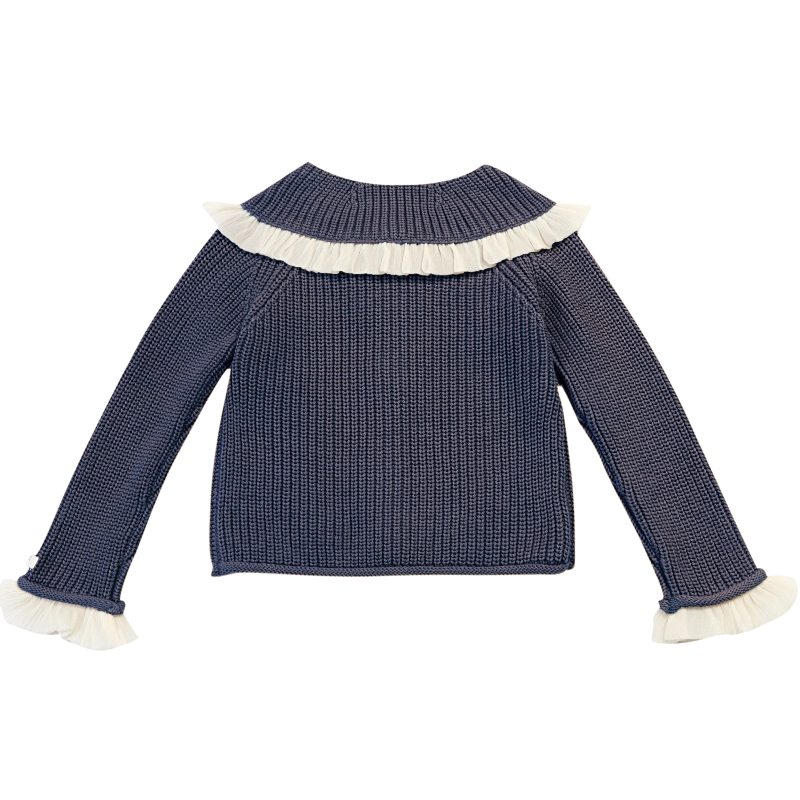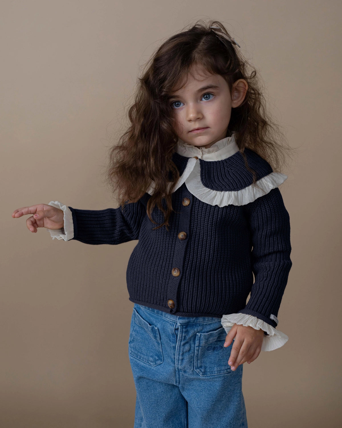 Delightfully detailed! The Zoila cardigan adds a touch of elegance to any outfit. Featuring button fastenings through the front and a charming ruffled collar.