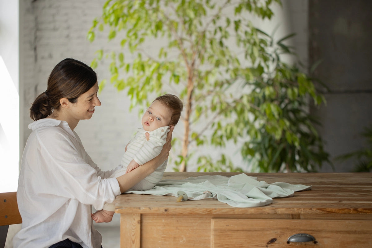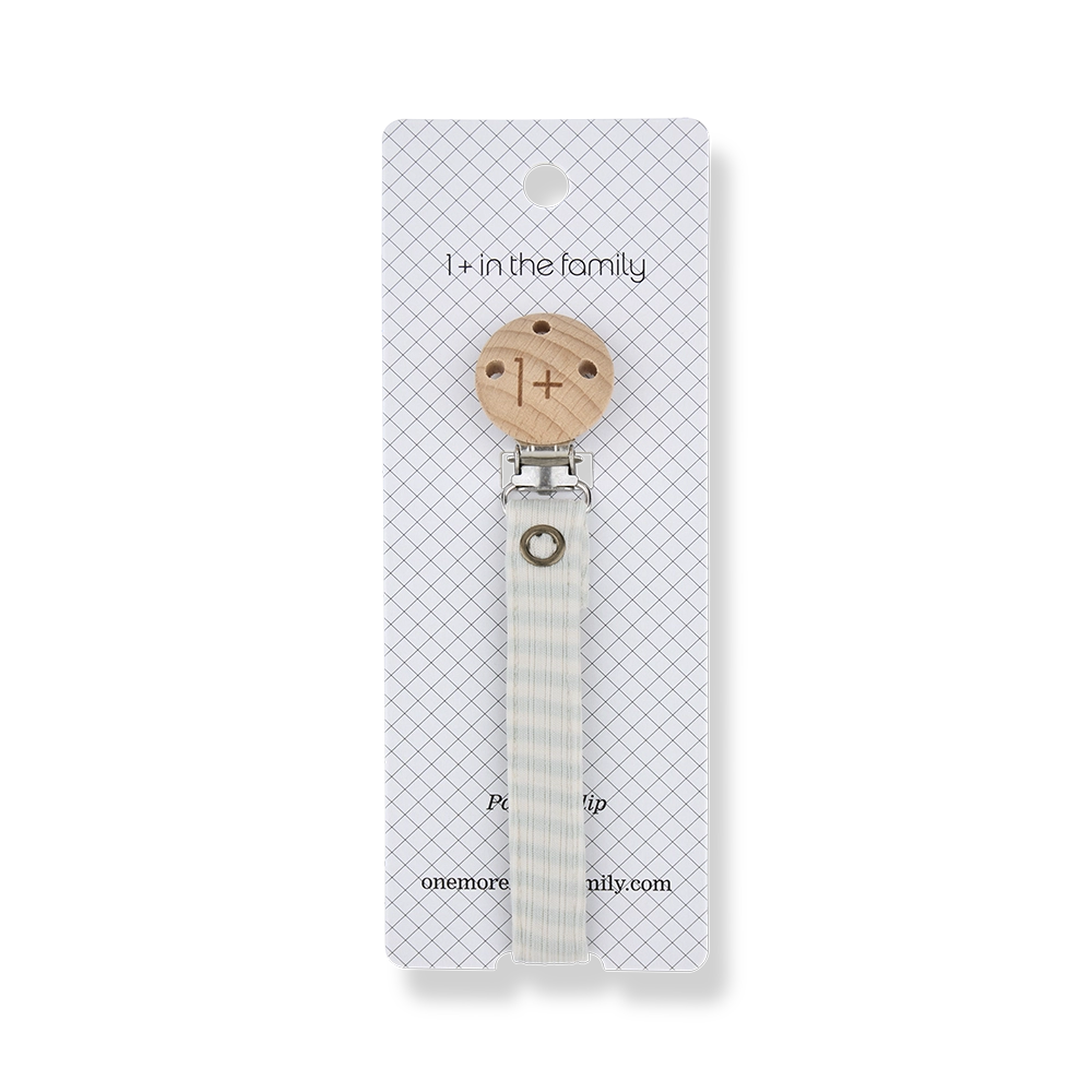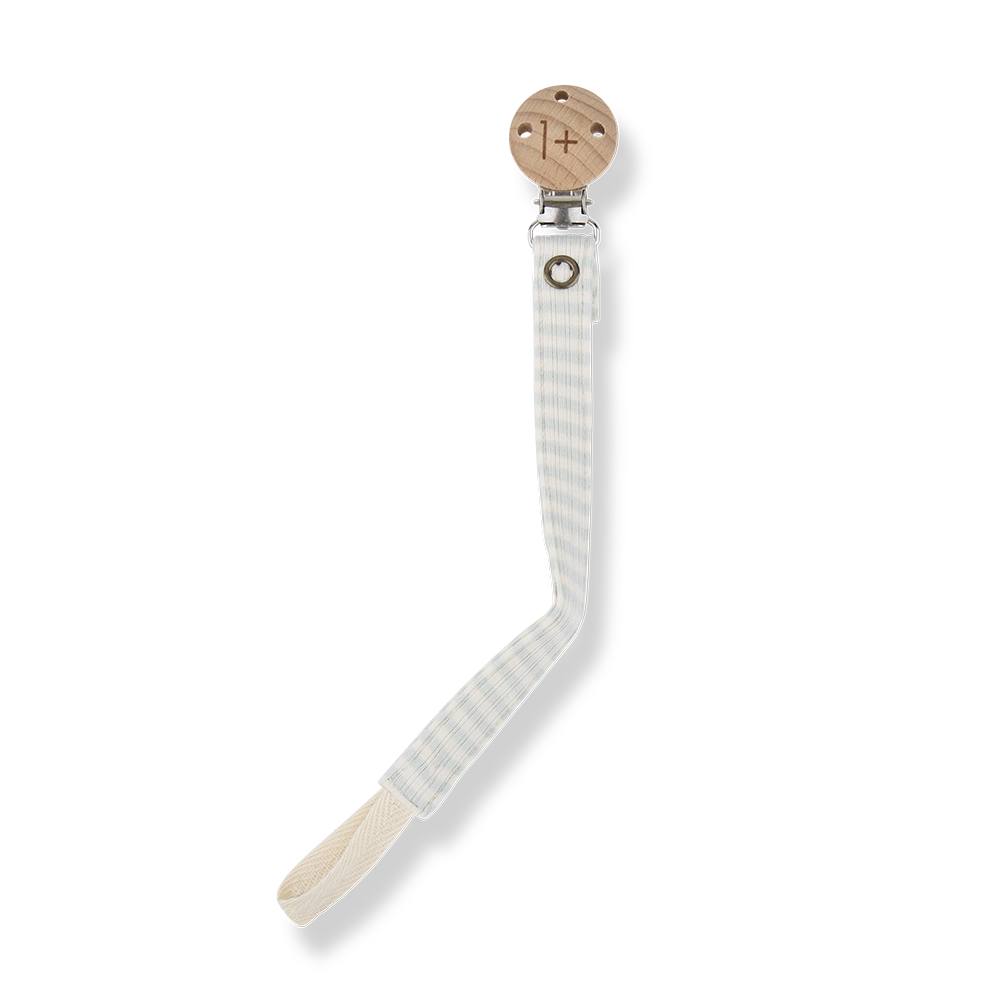 The Aina Pacifier Clip in Pale Aqua by 1+ In The Family is a practical and stylish accessory for your baby. This clip is made from soft and durable modal striped rib fabric, ensuring your baby's pacifier remains clean and within easy reach. The gentle pale aqua color and elegant striped pattern add a touch of charm to any outfit. Its user-friendly design allows for secure attachment to your baby's clothing, providing both convenience and peace of mind.
