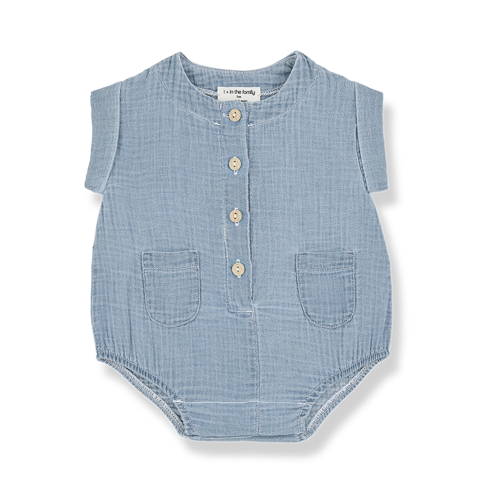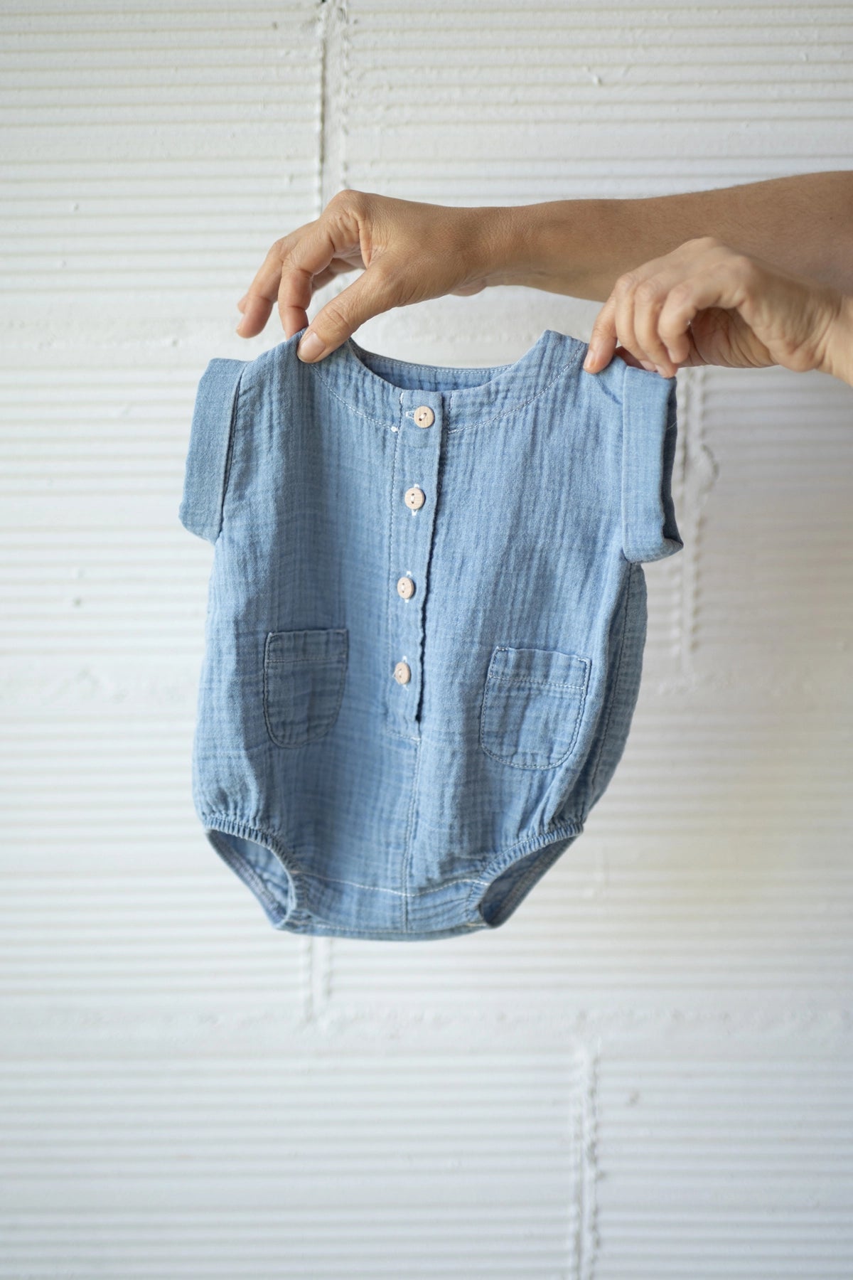 The Carlo Romper in Denim by 1+ In The Family is made from soft washed denim muslin, and offers a relaxed and comfortable fit perfect for all-day wear. The timeless denim hue and design make it suitable for any occasion, be it a family outing or a casual day at home. With attention to detail and high-quality fabric, this romper combines durability with style.