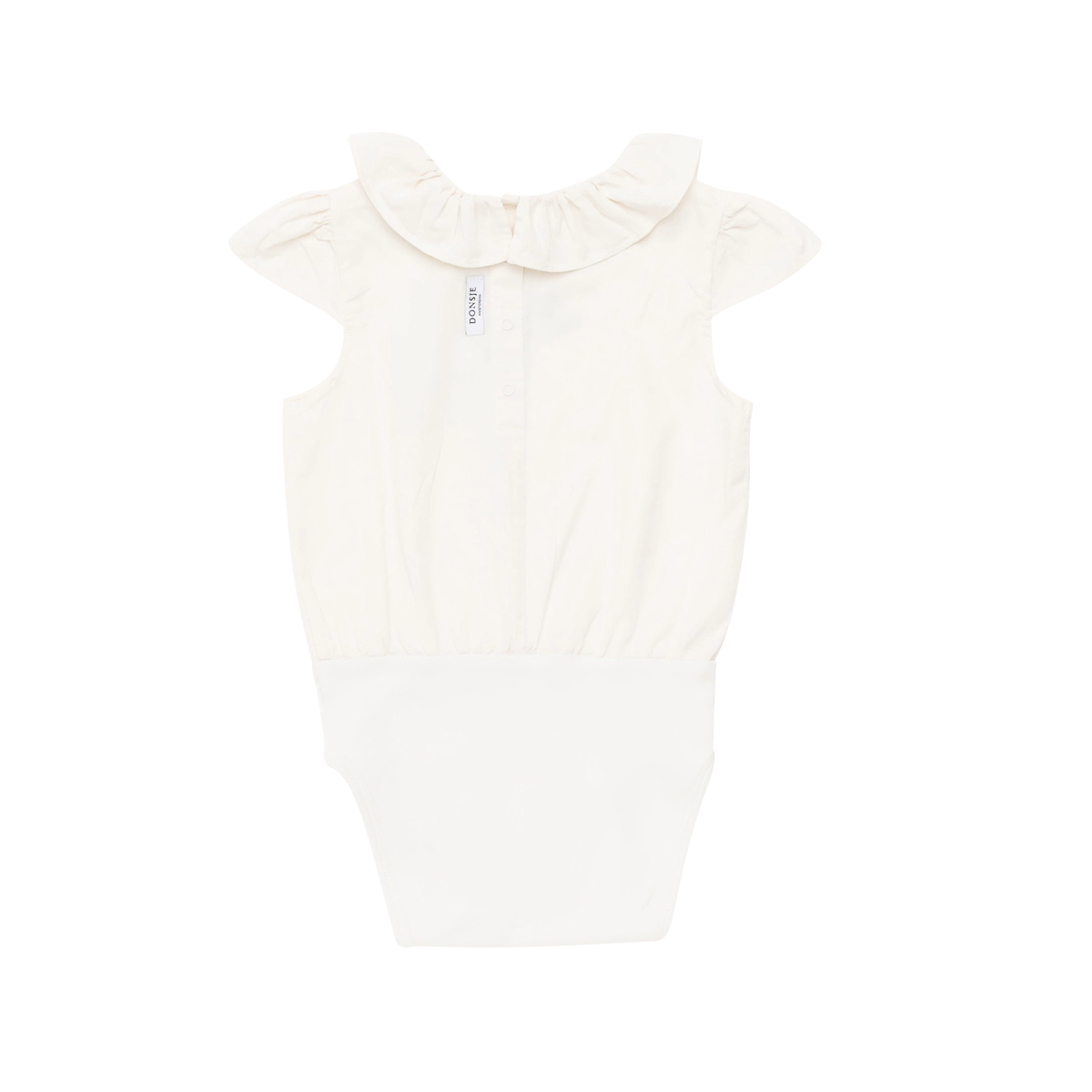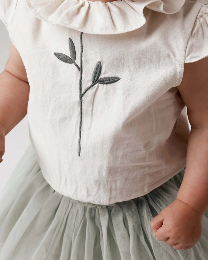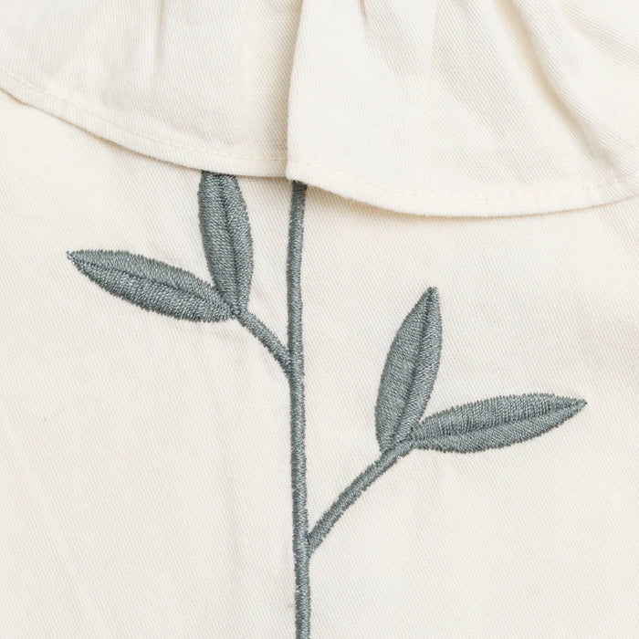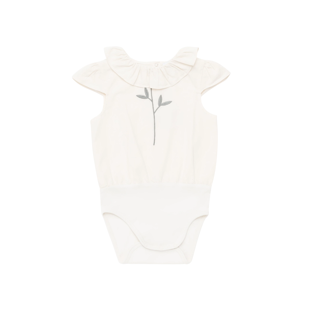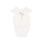 The Madie Bodysuit is a beautiful addition to any mini wardrobe. Complete with snap fasteners along the back and crotch and featuring dainty embroidered flower embellishment.