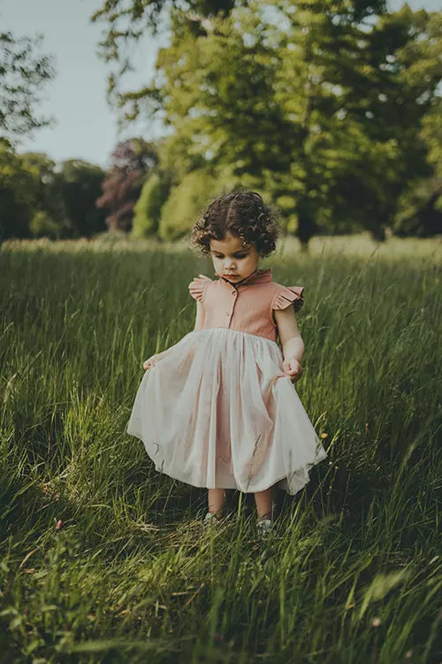 Modern princess! Made from breathable cotton and layered with weightless tulle, the Fleurance Dress has a beautiful ruffled collar and delicate butterfly sleeves—a dreamy creation worthy of every modern princess. Ideal for summer festivities and joyful celebrations.