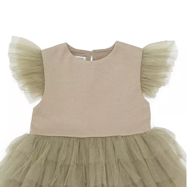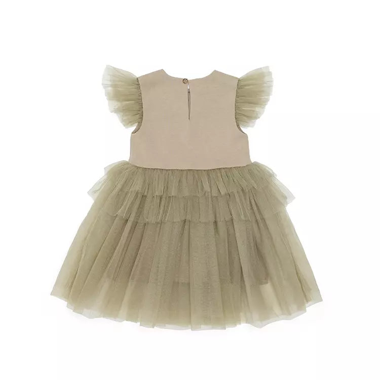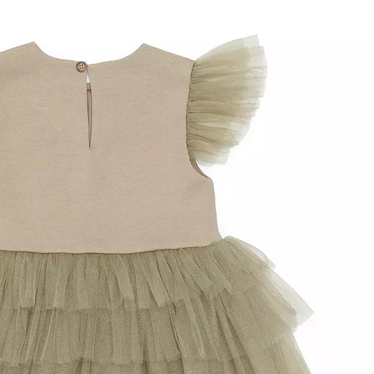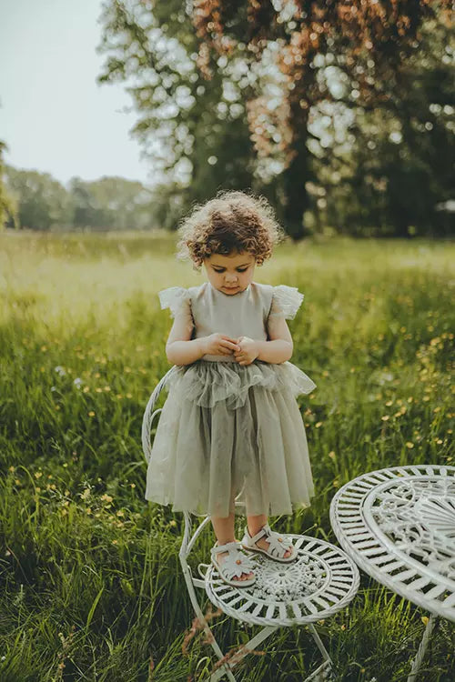 Festivities await! Irresistibly beautiful, the Nena Dress is ideal for summer festivities and big celebrations. Made with cotton and lined with layers of weightless tulle, this slip-on dress has a button fastening at the back and butterfly sleeves—the perfect dress for a young lady's party!
