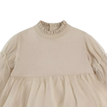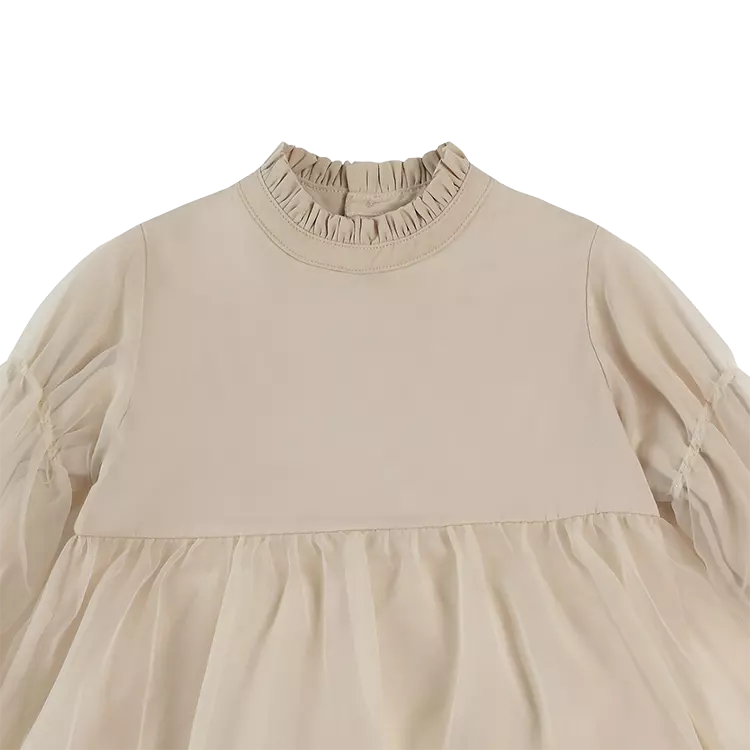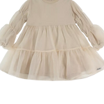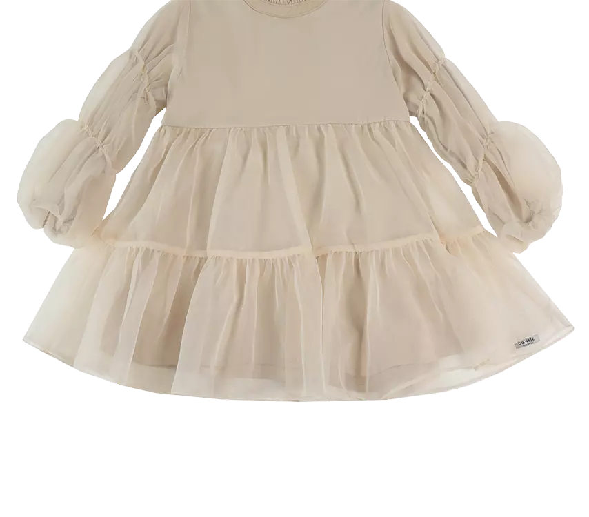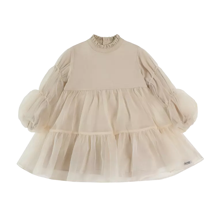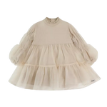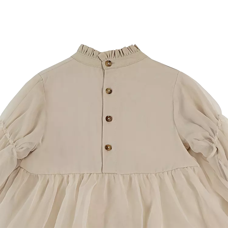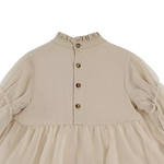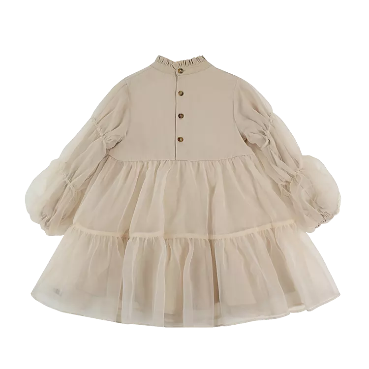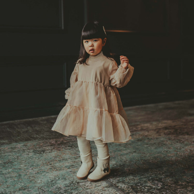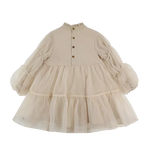 The sweetest! The exquisite Valentien dress is a statement piece on its own. A mock collar, slightly puffed organza sleeves with elasticated cuffs and a layered organza skirt make this beautiful creation a prime choice for a festive occasion. Featuring button fastenings along the back.