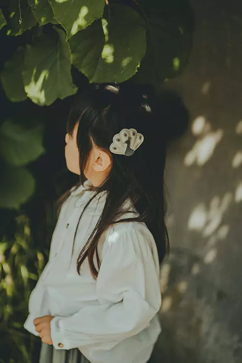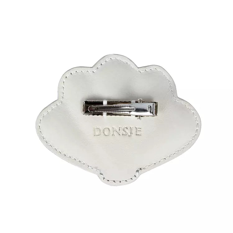 Donsje | Hairclip Guar Peacock - Off White Metallic Leather
