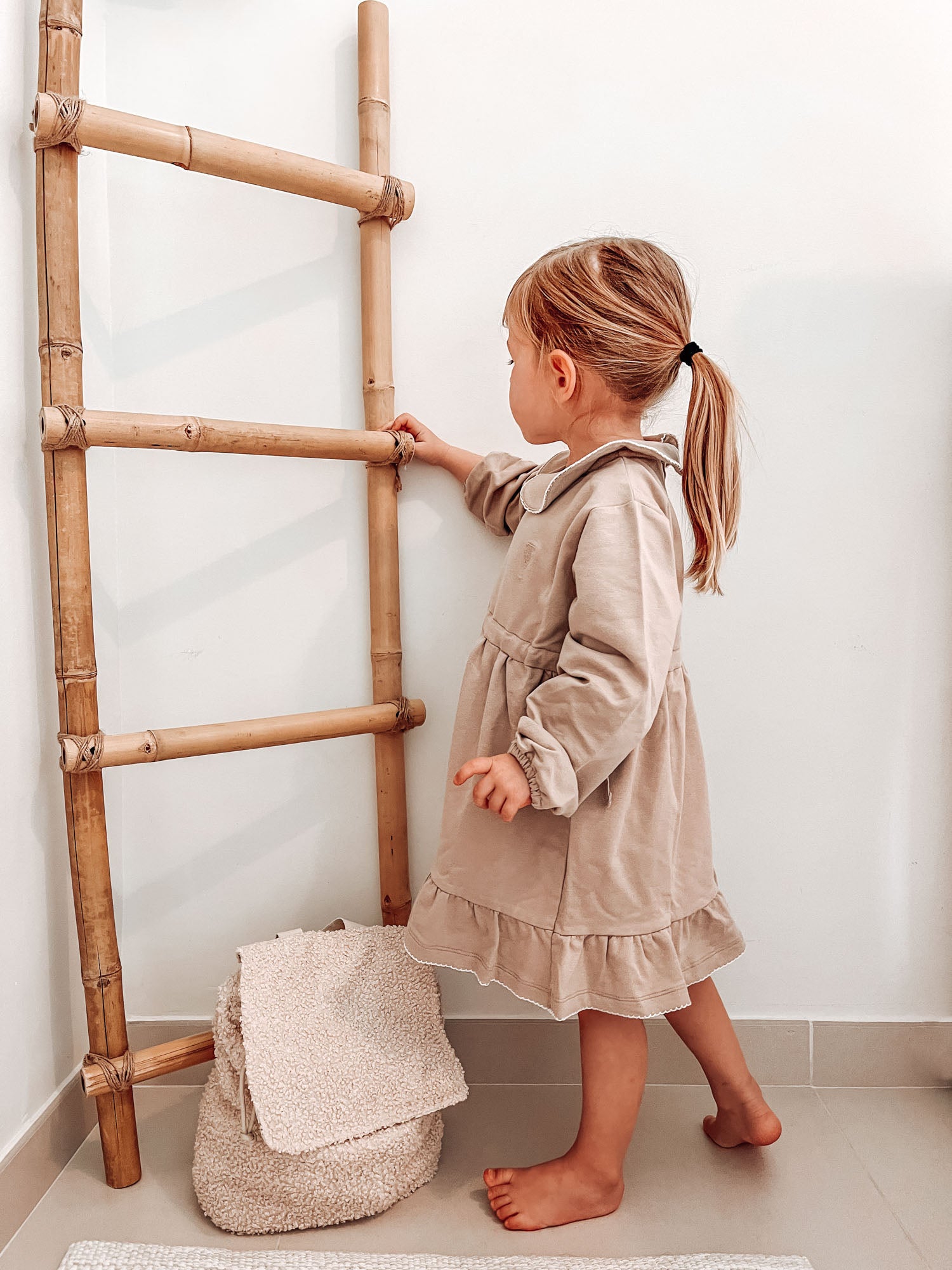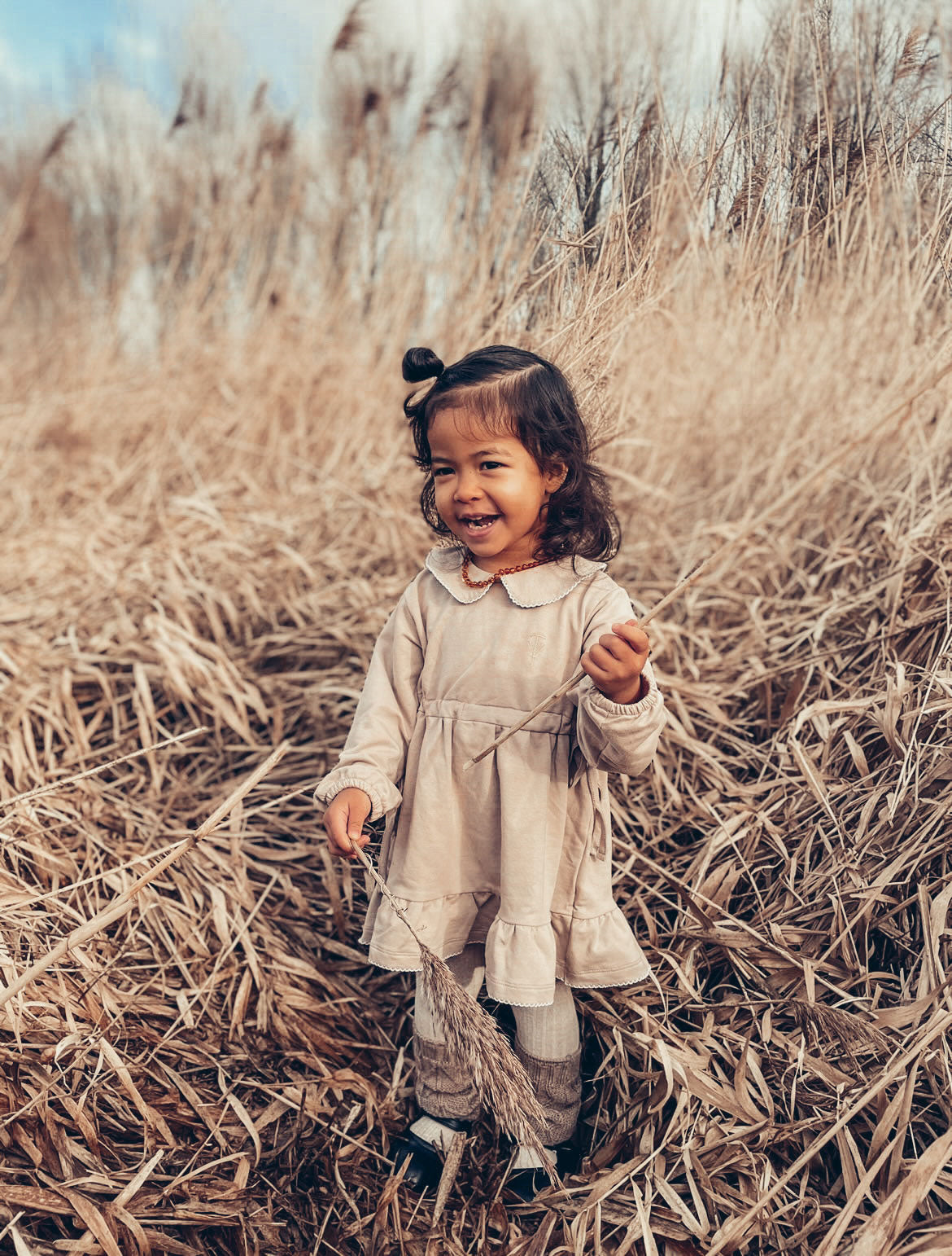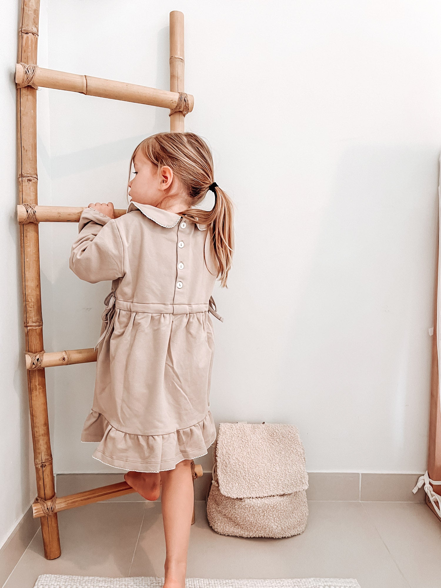 - The dress features two cords on both sides that can be adjusted for a perfect fit on any child.