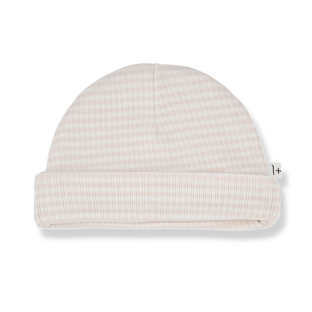 The Gio Baby Beanie in Nude by 1+ In The Family is a must-have accessory for your newborn. Crafted from soft and breathable modal striped rib jersey, this beanie ensures a snug and comfortable fit for your baby’s delicate head. The versatile nude color and classic striped pattern make it an easy addition to any outfit. Perfect for keeping your little one warm and stylish, it pairs wonderfully with other items from the 1+ In The Family collection.