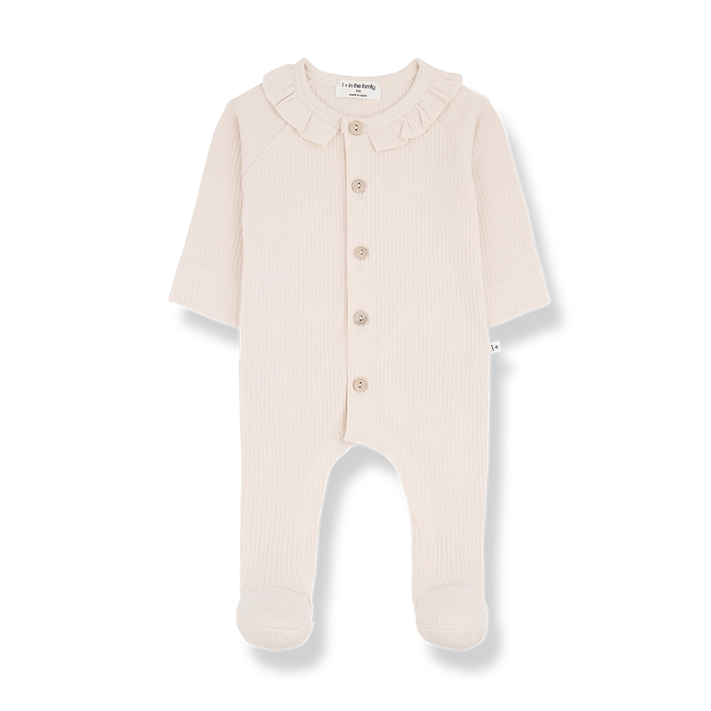The Rosetta Newborn Onesie in Nude by 1+ In The Family is a must-have for your baby's wardrobe. Made from soft plain rib jersey fabric, this onesie provides a gentle and snug fit for your newborn’s delicate skin. The neutral nude color and classic design make it an essential piece for everyday wear, offering both comfort and style.