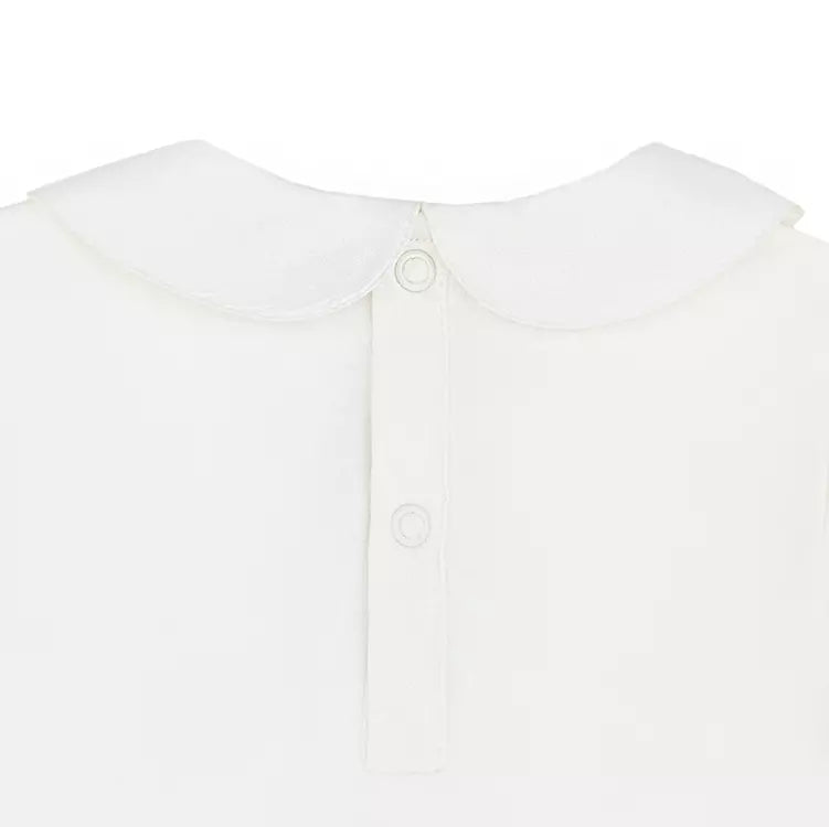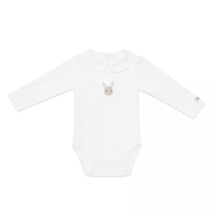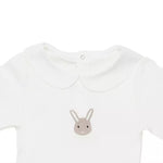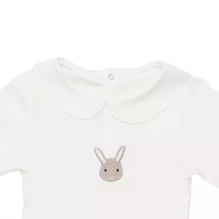 Sweet little bunny! The Davo bodysuit is the sweetest wardrobe essential! The cute animal embroidery and lovely peter-pan collar make the bodysuit unique. 100% organic cotton is soft on the skin and offers perfect breathability.