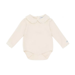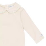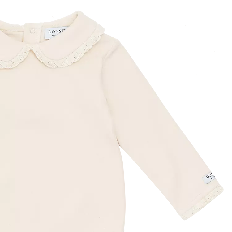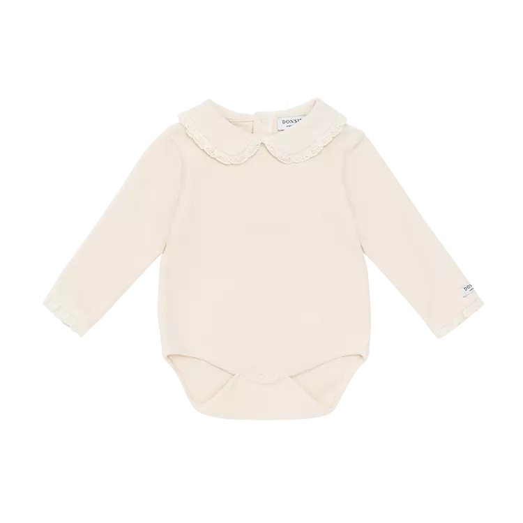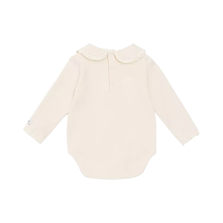 Sweet as a rose! Summer awaits in the Diete Bodysuit. Made from organic cotton, with delicate cotton lace details around the collar and sleeves, this little bodysuit is truly adorable. Complete with snap fasteners along the back and crotch. It makes the perfect set when paired with the Affy Leggings.