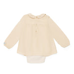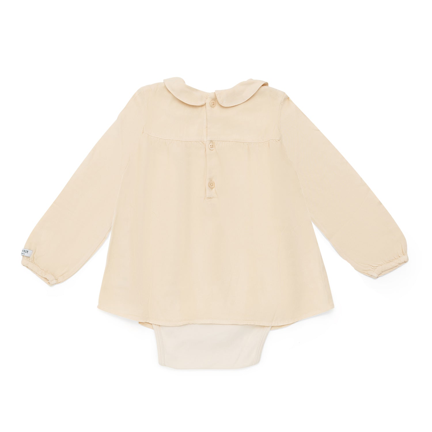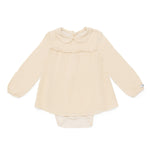 The Kaia bodysuit is impossible to resist. Your little baby girl will look absolutely adorable in this darling design. The round collar adds a lovely finishing touch.