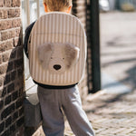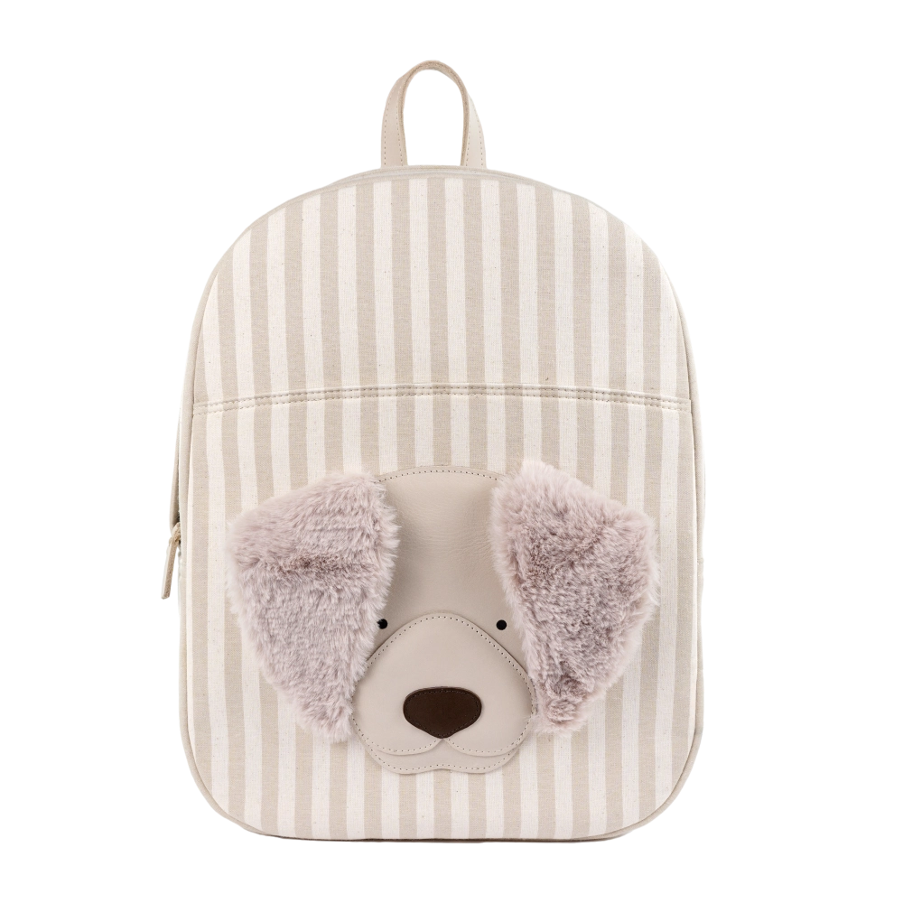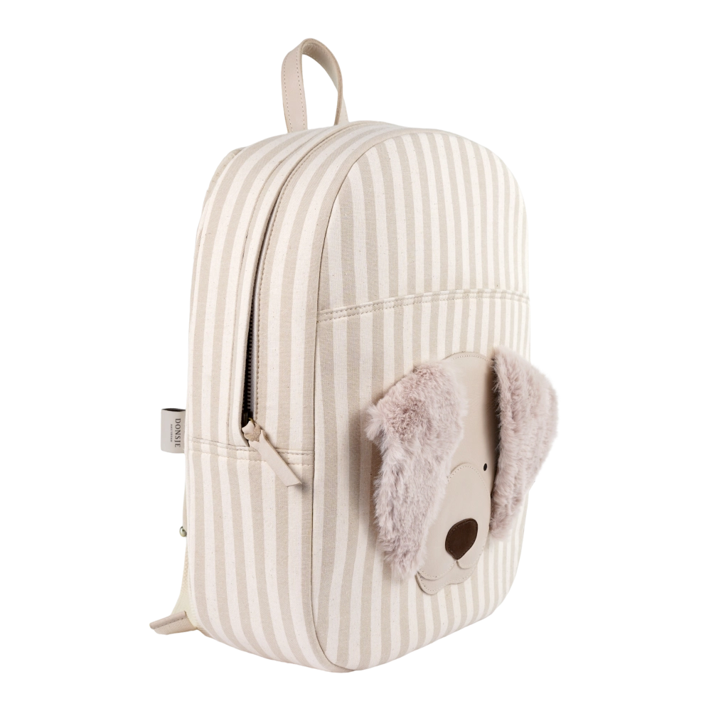Stay pawsitive! A true companion for all their school adventures, the Bippe Schoolbag will hold all their learning essentials and little treasures found throughout the day. Adjustable shoulder straps offer enhanced comfort and support, while a water-resistant lining ensures that no water is a danger. The charming schoolbag features a signature Donsje animal character—a Golden Retriever with furry ear details—and an easy-to-open and -close zipper along the sides and top.