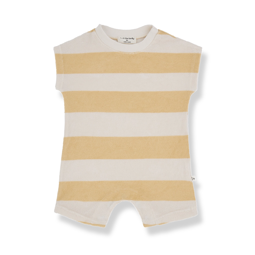 The Marco Onesie in Peach by 1+ In The Family is a must-have for your baby's wardrobe. This adorable onesie is made from soft, striped terry jersey material, ensuring a cozy and comfortable fit. The charming peach color adds a touch of elegance, making it suitable for both everyday wear and special occasions. The high-quality fabric provides durability while being gentle on your baby's skin. Pair it with other items from the 1+ In The Family collection for a stylish and coordinated look.