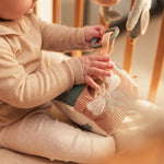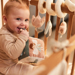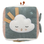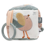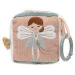 This fun activity cube in the Lovely Birds theme is full of colourful images, cute prints, fun tags and pretty embroidery! You'll find happy little birds, fluffy clouds, flowers, a star, and even fairy Amy comes along! The birds have cute little wings, and the cords are beautifully embroidered, so your little one can play and explore endlessly. This mega fun activity cube stimulates your little one's senses and provides hours of playtime fun!