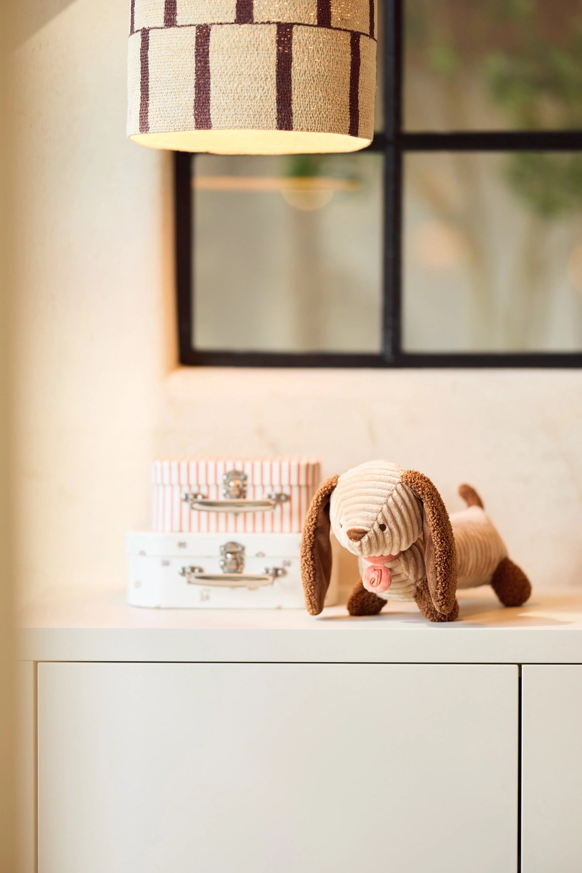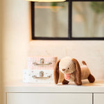 This sweet cuddly toy Diego Dog is the perfect friend for your little one. Made of soft ribbed fabric in biscuit with leather brown boucle ears extra huggable! He wears a cute collar in soft terra with the Jollein logo. Perfect for cuddling, playing, and taking everywhere. Your mini's best buddy!