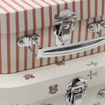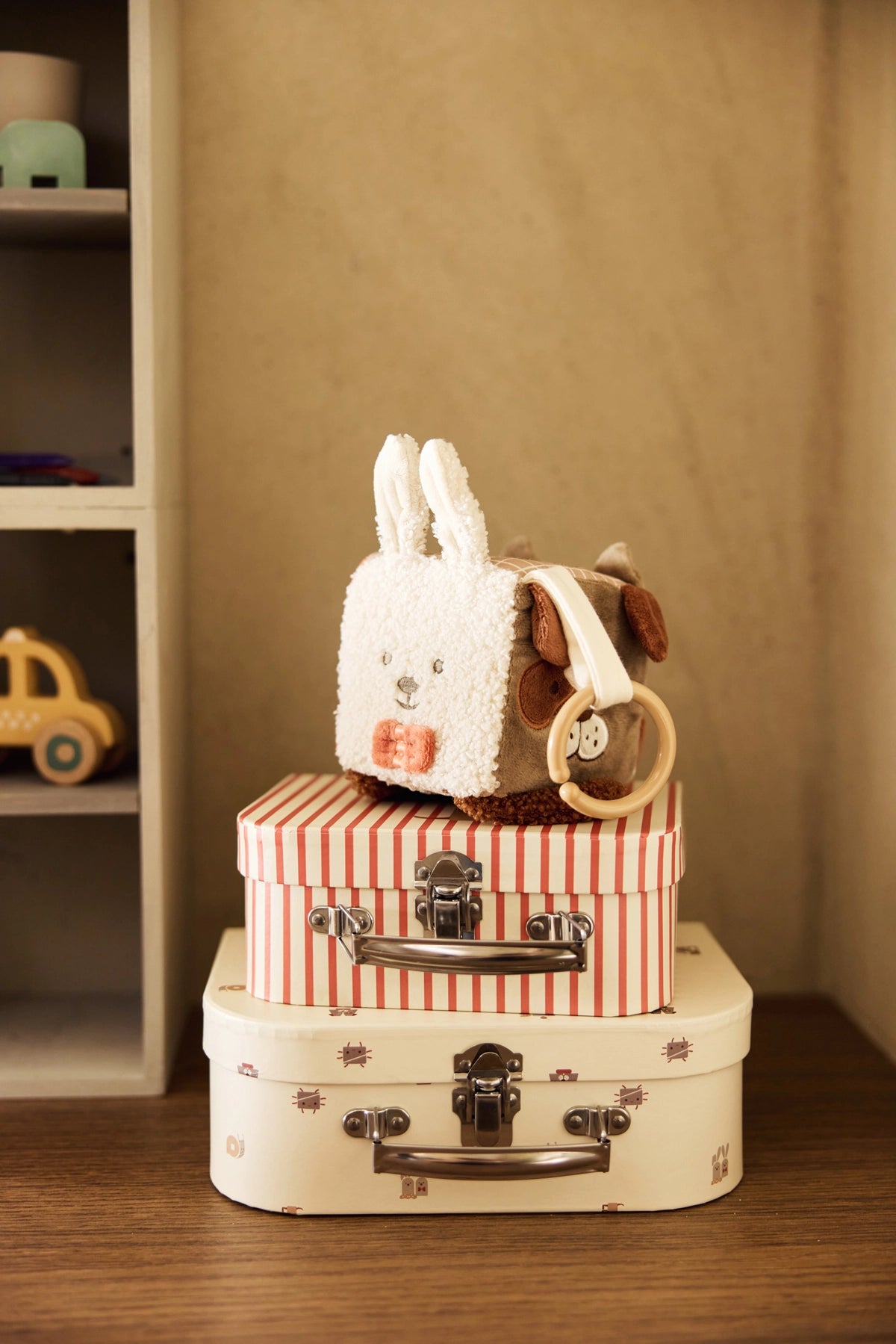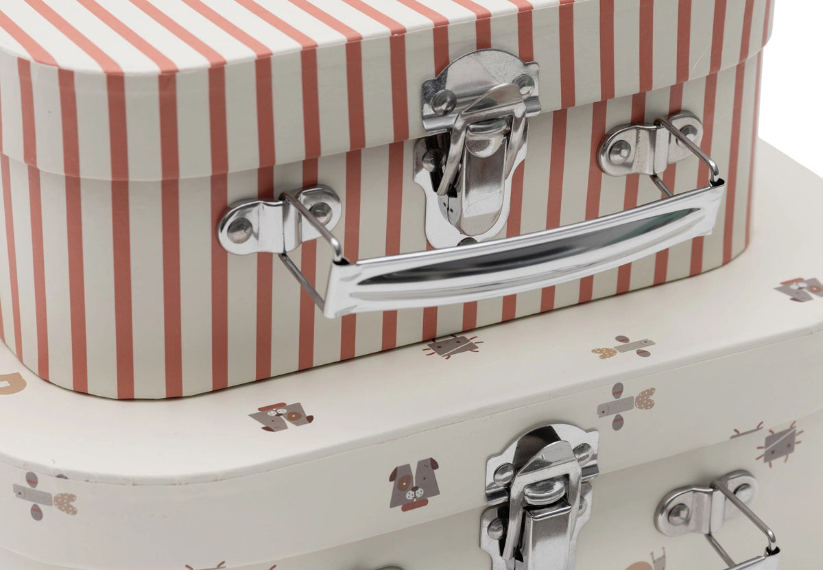 These play suitcases from the Animal Friends collection are perfect for your little one! The outer case has a cheerful all-over print, while the inner case comes in a warm soft terra shade with an adorable dog on it. Both cases are lined with a milky coffee check print and the text “belongs to.” Ideal for storing small treasures or as eye-catchers in the nursery!