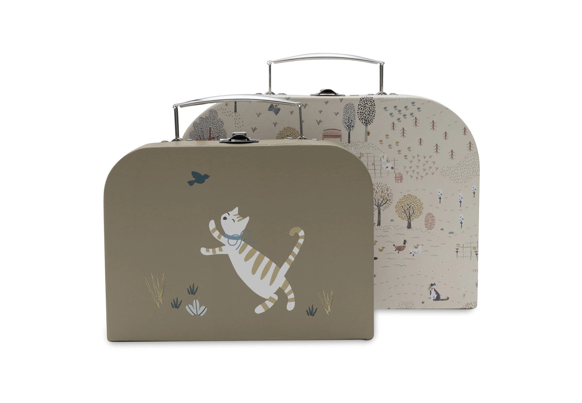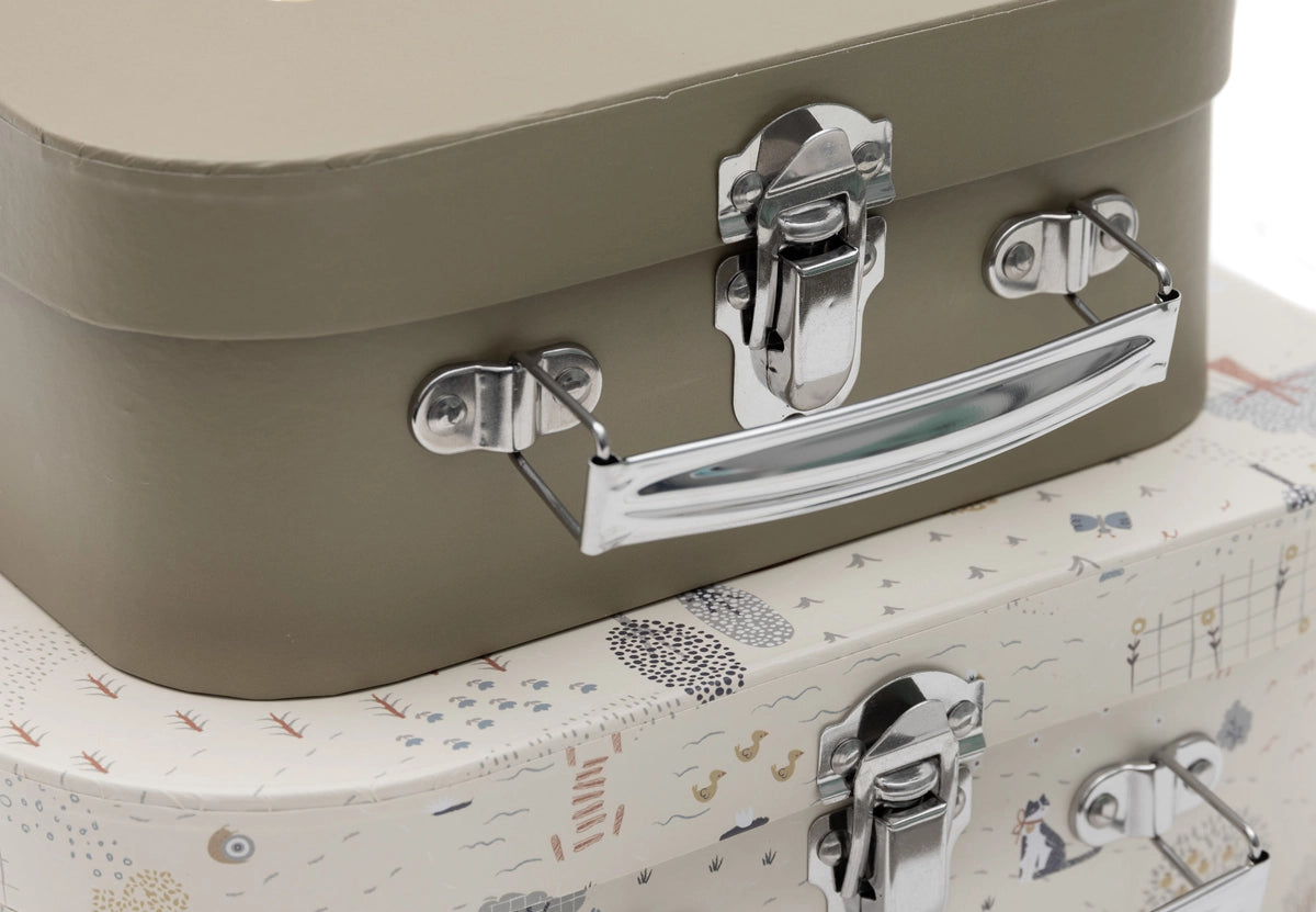 This play suitcase set in Tiny Park style is perfect for your little one! The cases feature different prints and match the Tiny Park color theme, with silver handles for a playful look. Both suitcases have a checkered pattern inside and the text “belongs to” so your mini can take them anywhere. Ideal for storing little treasures or as nursery decoration!