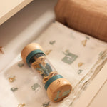 Bring fun and colour into your little one's world with our cheerful rain rattle! Inside the transparent tube, you can see the coloured balls bouncing around, providing a delightful rattle and endless entertainment. One of the cutest items from our toy collection and incredibly fun as a maternity present!
