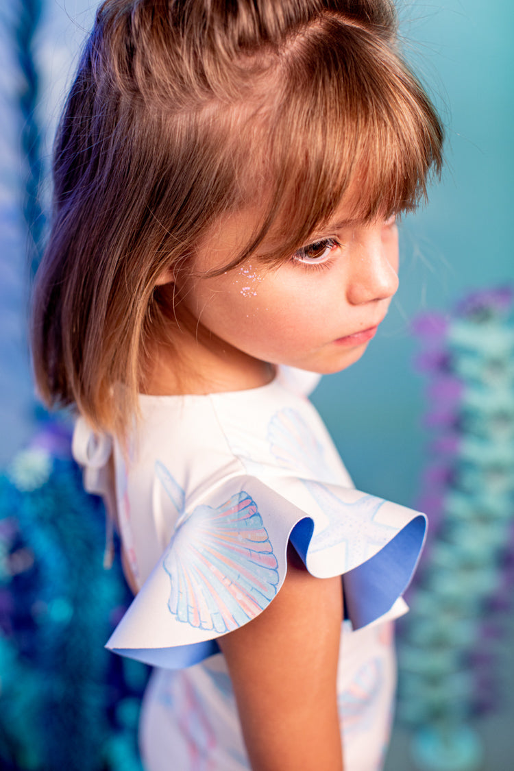 The Pepita & Me Dayana One Piece in Conchas Arena is designed to make your little one stand out with its unique flounce sleeves and adorable open-back ribbon bow. This stylish swimsuit is not only fashionable but also functional, made from quick-drying fabric that provides UPF50+ protection to keep your child safe from the sun. Perfect for beach adventures and poolside fun, the Dayana One Piece combines comfort, style, and safety.