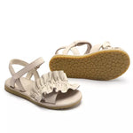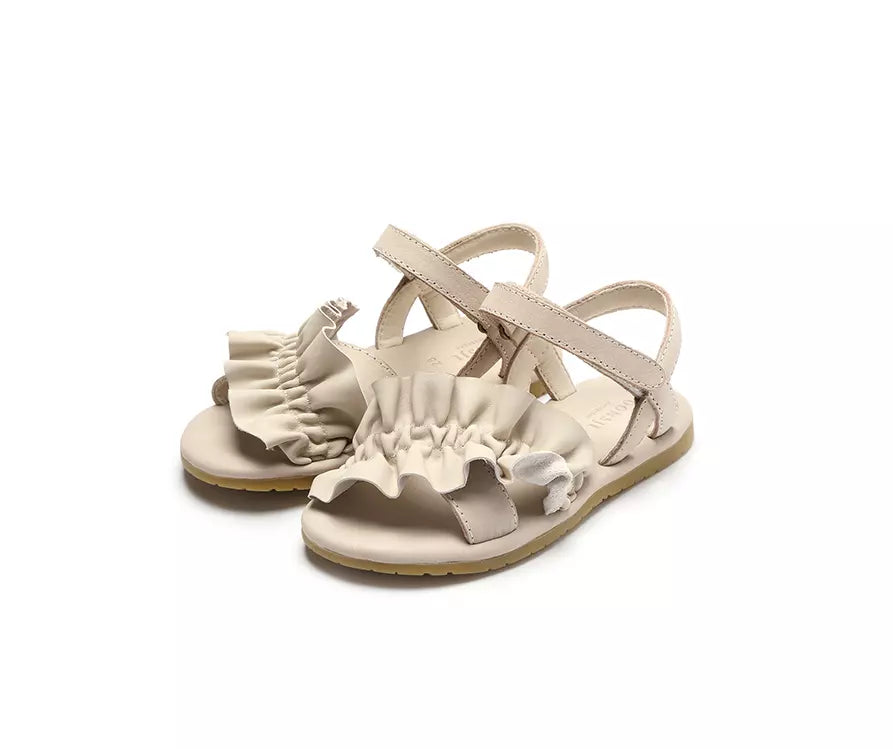 Sweet as the summer! Elaborate ruffled detailing and carefully crafted from sheep leather; these 100% premium leather sandals are made for long summer days! Featuring easy-to-use adjustable Velcro fastening straps and 100% rubber outsole that supports those little feet, the Fine Sandals will surely be your little one's everyday favourites.