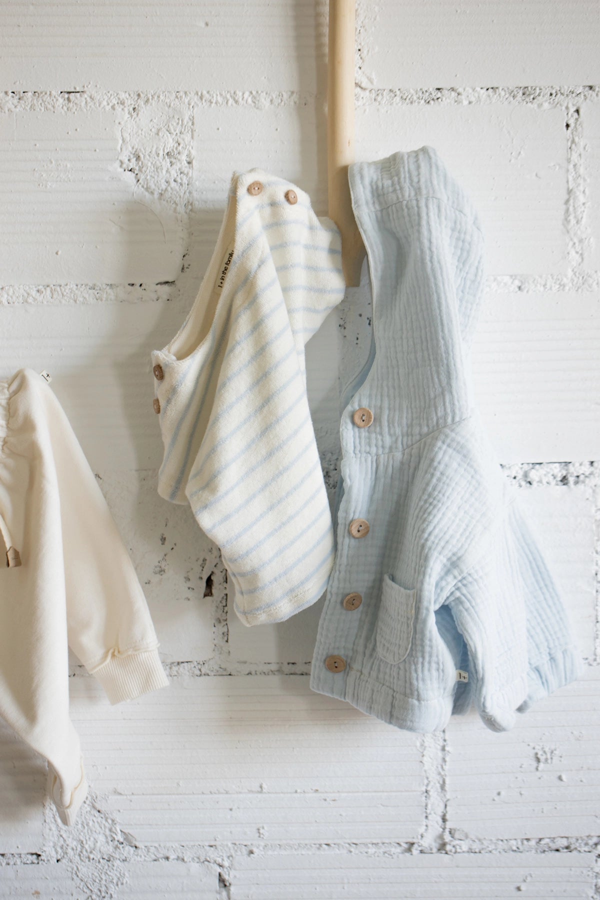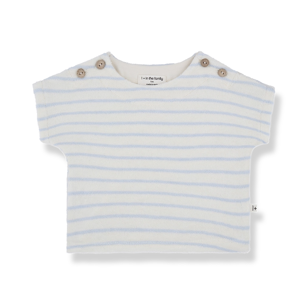 The Tomaso Top Short Sleeves in Misty Blue by 1+ In The Family is a stylish and comfortable choice for your child. Made from soft terry jersey, this short sleeve top provides a cozy fit while being gentle on your baby's skin. The misty blue color adds a calming and refreshing touch, perfect for any occasion. Designed with attention to detail, this top ensures ease of movement and pairs effortlessly with other items from the 1+ In The Family collection.