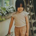 Lovely for every outfit! The Aurore Top has a beautiful ribbed design and a slightly wavy mock collar. It's an easy slip-on item that can be effortlessly combined with trousers, shorts, and skirts from the Donsje collection.