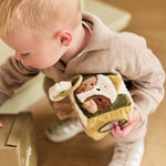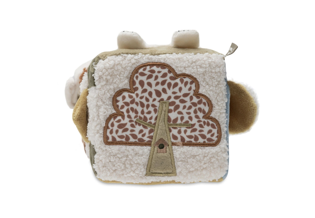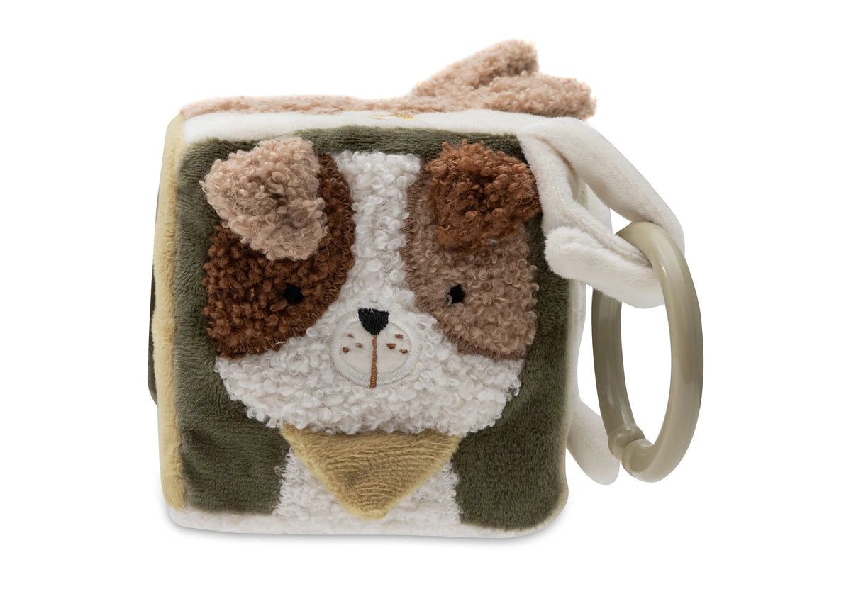 This soft activity cube from the Tiny Park collection is a magical toy for your little one. Featuring cute animals like a cat, dog, and owl, and interactive elements such as crinkly ears and a mirror, it stimulates your baby's senses and motor development. A fun and educational cube, perfect for hours of play in the playpen or on the go!