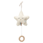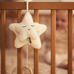 Shop this pretty musical hanger Star, and let your little one enjoy the beautiful sounds of Schubert's song lullaby. These stars in the shape of a big and a smaller star feature colourful cords, embroidered eyes and a pull cord to start the music. It looks so cute in your cot or playpen.