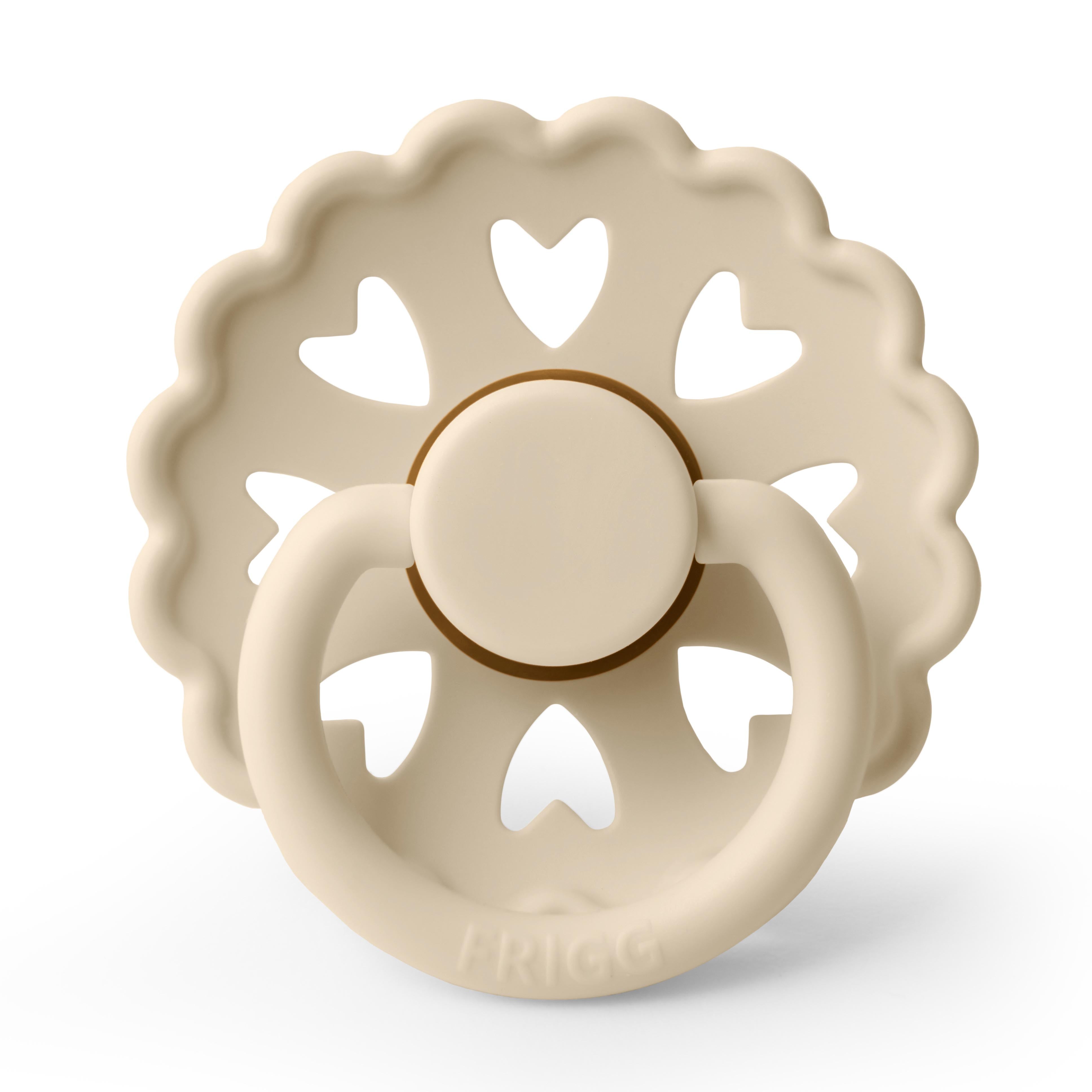 FRIGG Fairytale with scalloped edges and hearts surrounding the shield mimic one specific paper cutting by H. C. Andersen. The 8 little hearts support the universality of his creative work, and they symbolize love, the universal language of the world. This is the inspiration that lies within the FRIGG Fairytale pacifiers: They are approachable for everyone because love is a language, everyone can speak and understand.