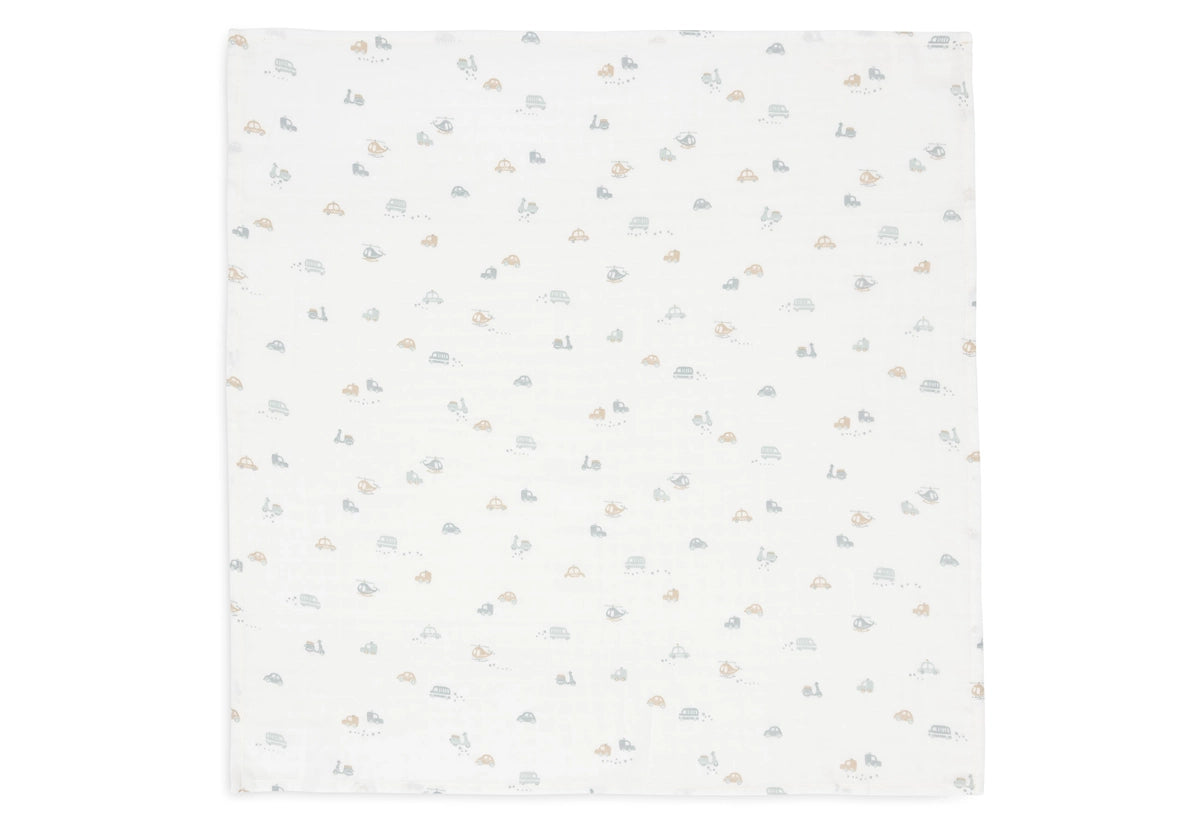Muslin cloths are indispensable for every parent! Whether you use them as towels, burb cloths, underpads or blankets On The Go - the possibilities are endless. These cute cloths, in On The Go theme are wonderfully soft and perfect for sensitive baby skins. This 3 pack has several fun prints full of cars, helicopters and scooters and the pretty colours Sea Green and Biscuit.