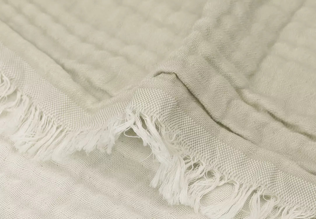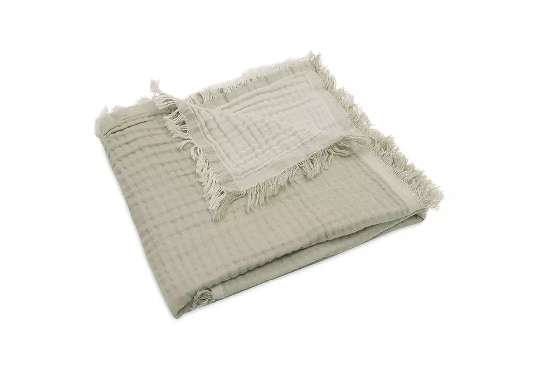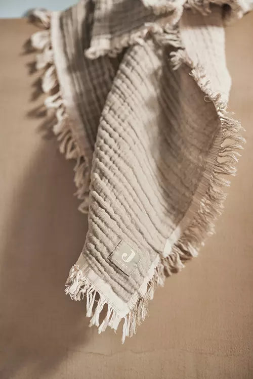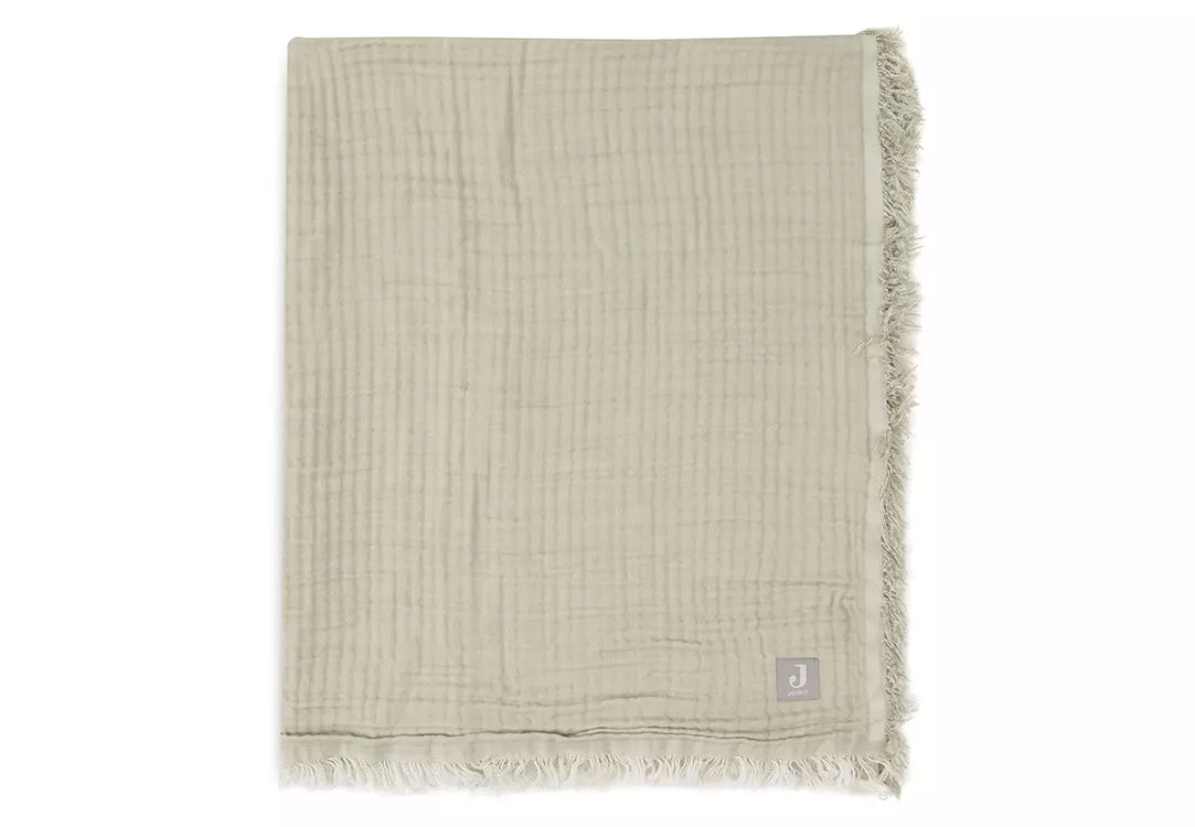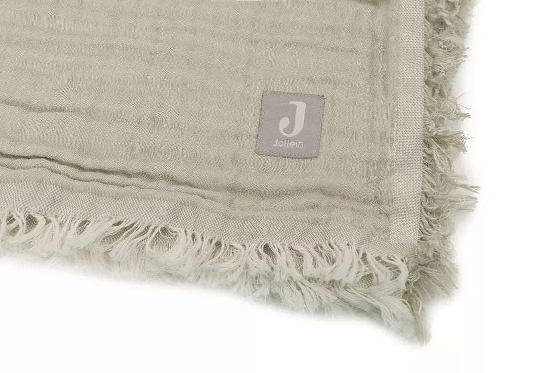 Jollein | Muslin Blanket with Fringe 75x100cm - Olive Green/Ivory