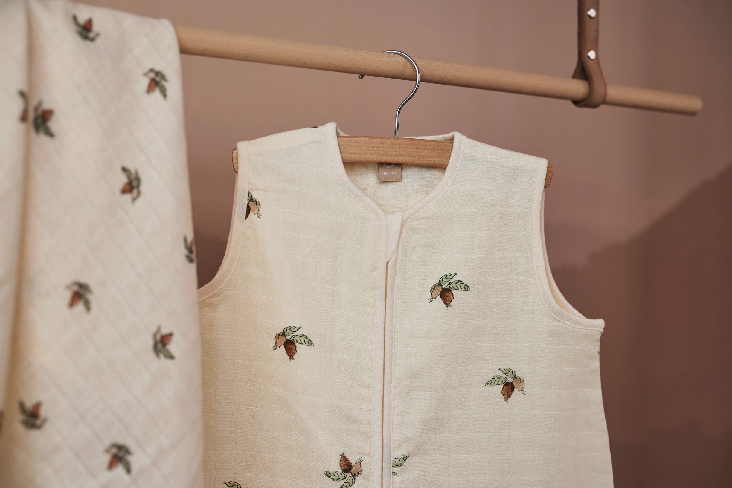 A lightweight muslin sleeping bag for babies that is perfect for summer and hot weather. Keep your little one cool and comfortable during the night with this lightweight muslin sleeping bag. With a low 0.5 TOG value, it's ideal for warm weather.