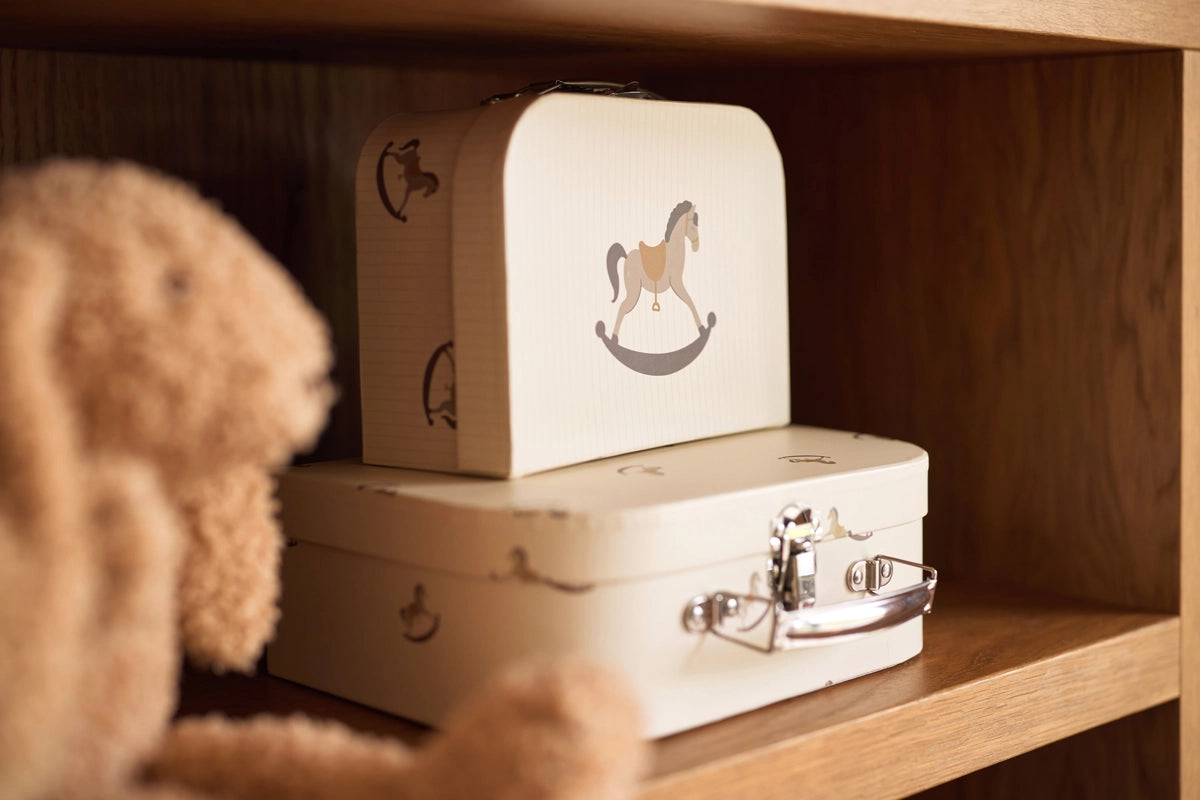 Just how cute are these suitcases together? Is your kid’s room also full of toys? With these toys suitcases you can easily store these items. This 2 pack has 1 larger suitcase with an all-over print of the rocking horse and 1 smaller suitcase with a print of the horse from our Nostalgic Ride collection! Which little one just has to have this suitcase?