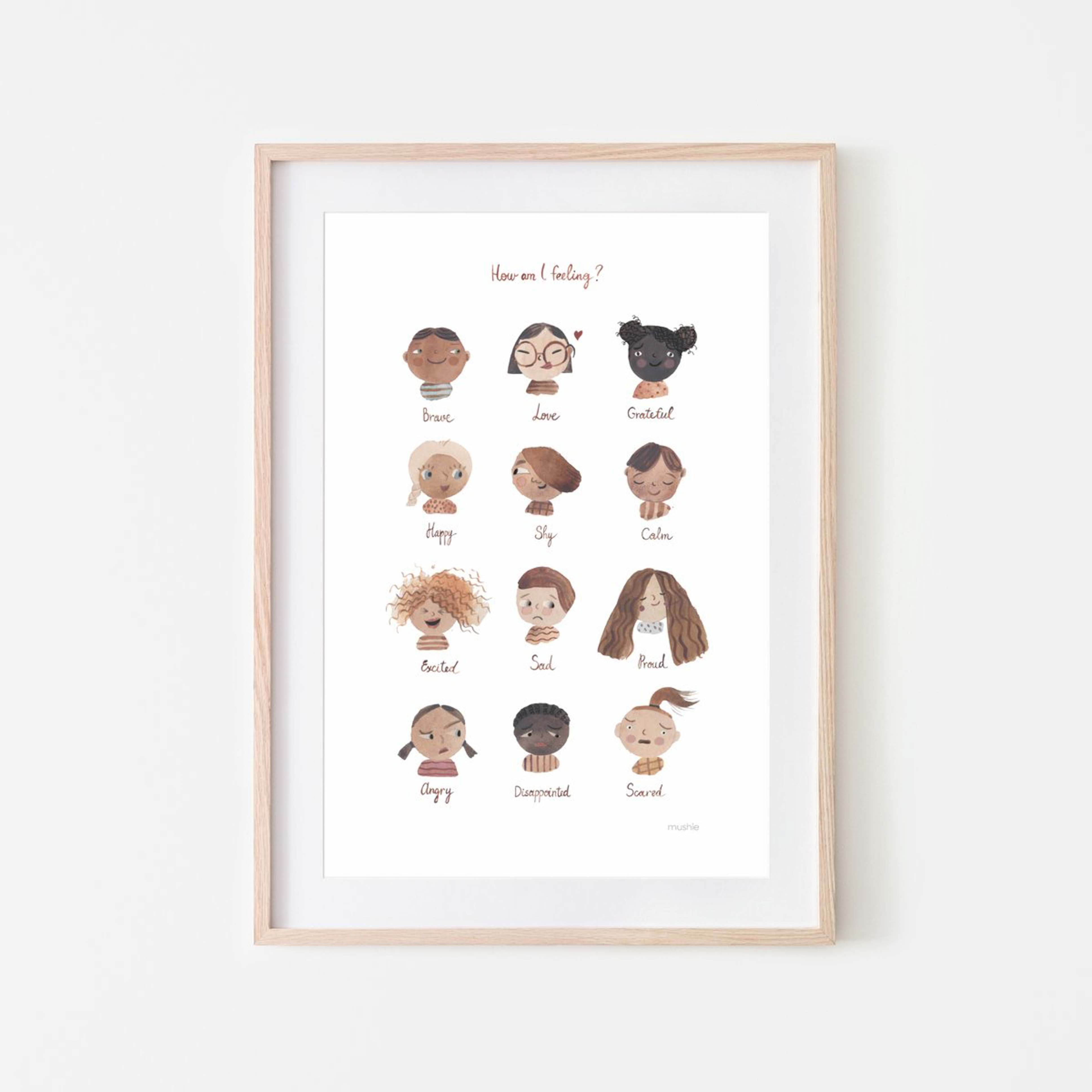 Mushie’s Feelings Poster beautifully illustrates the many feelings we experience as human beings. With this poster, children can explore the different kinds of feelings, recognize their own emotions, and begin to understand how others are feeling.