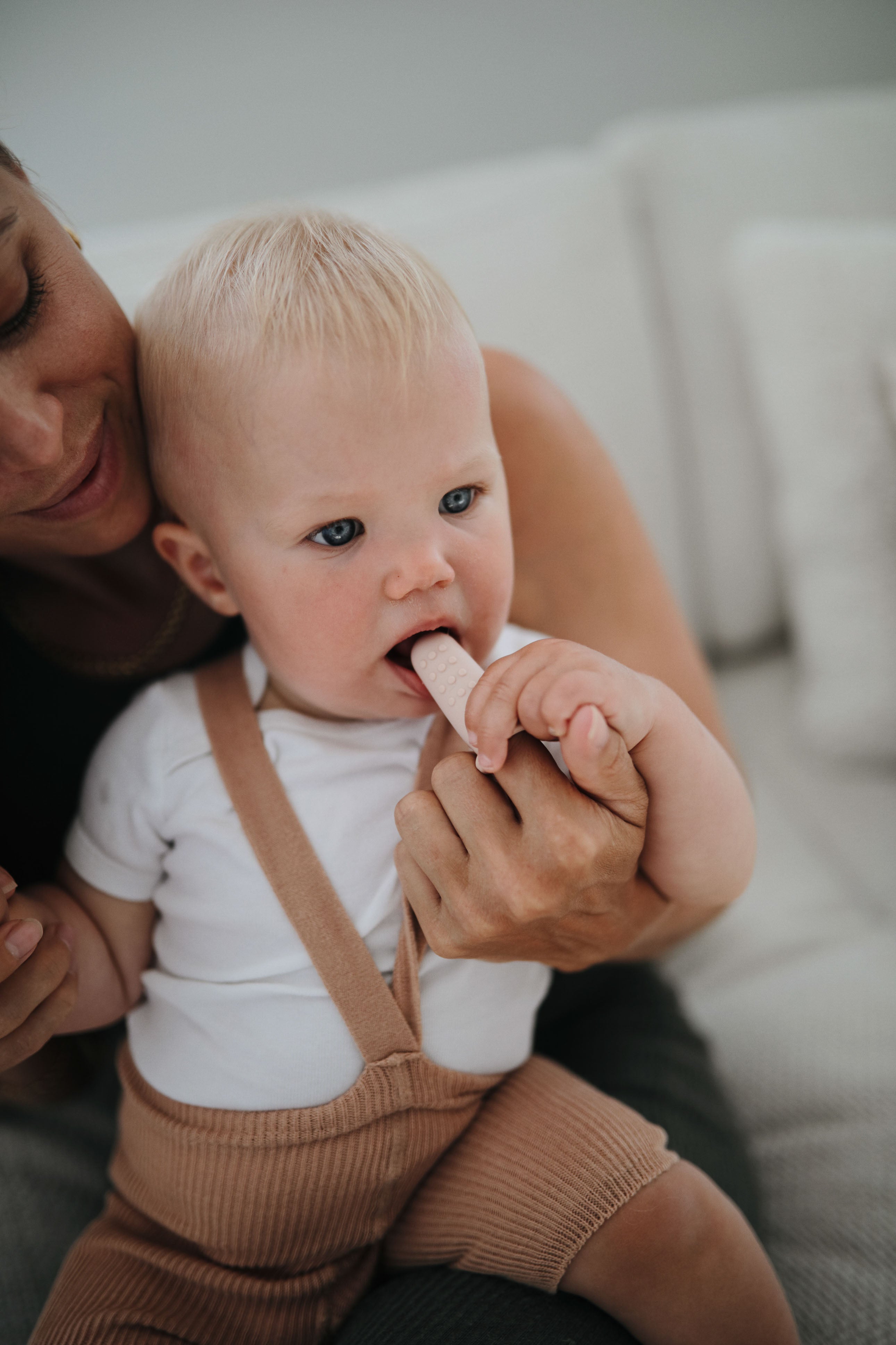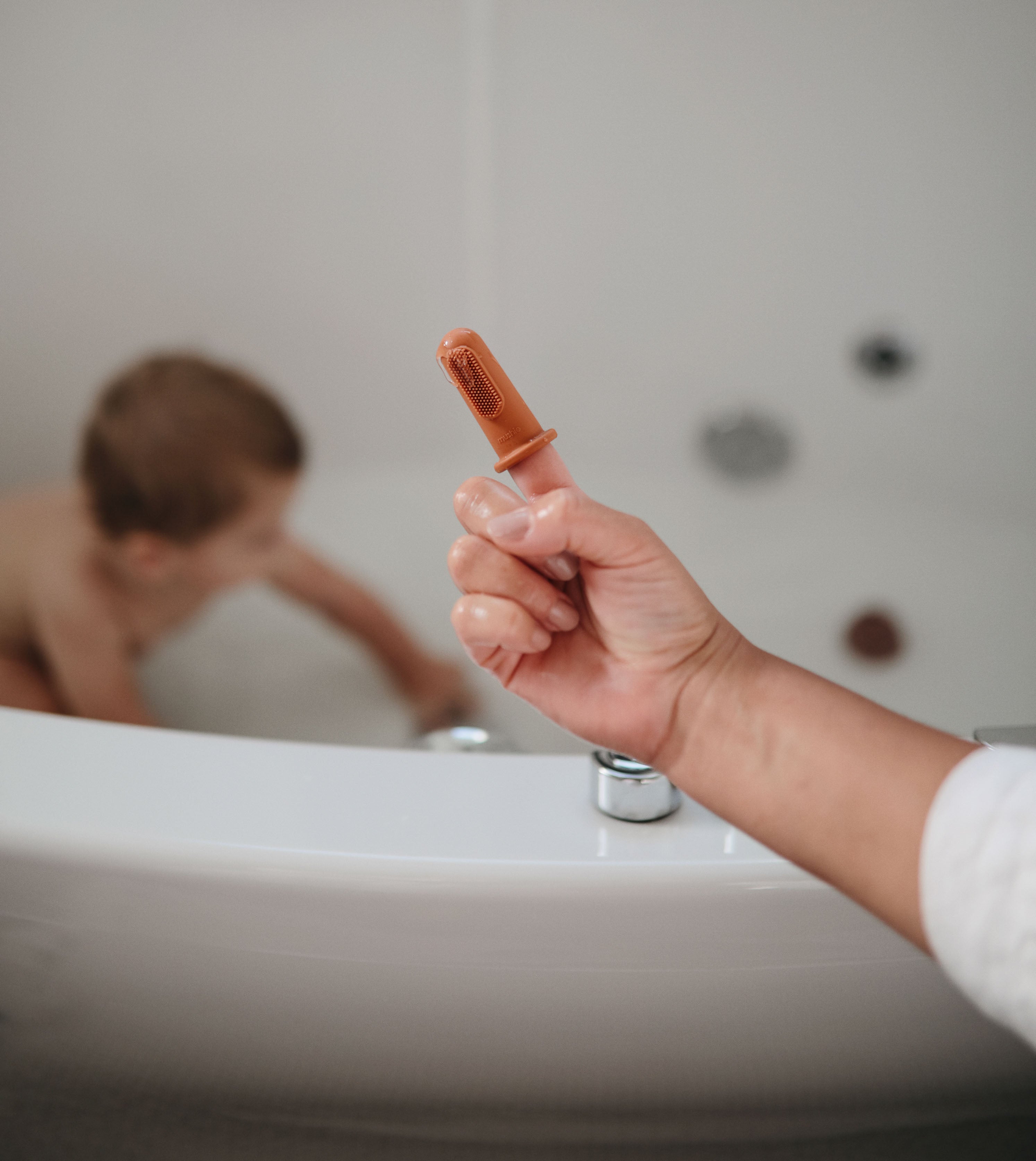 Brush bacteria away from your baby’s gums with a finger toothbrush from Mushie!