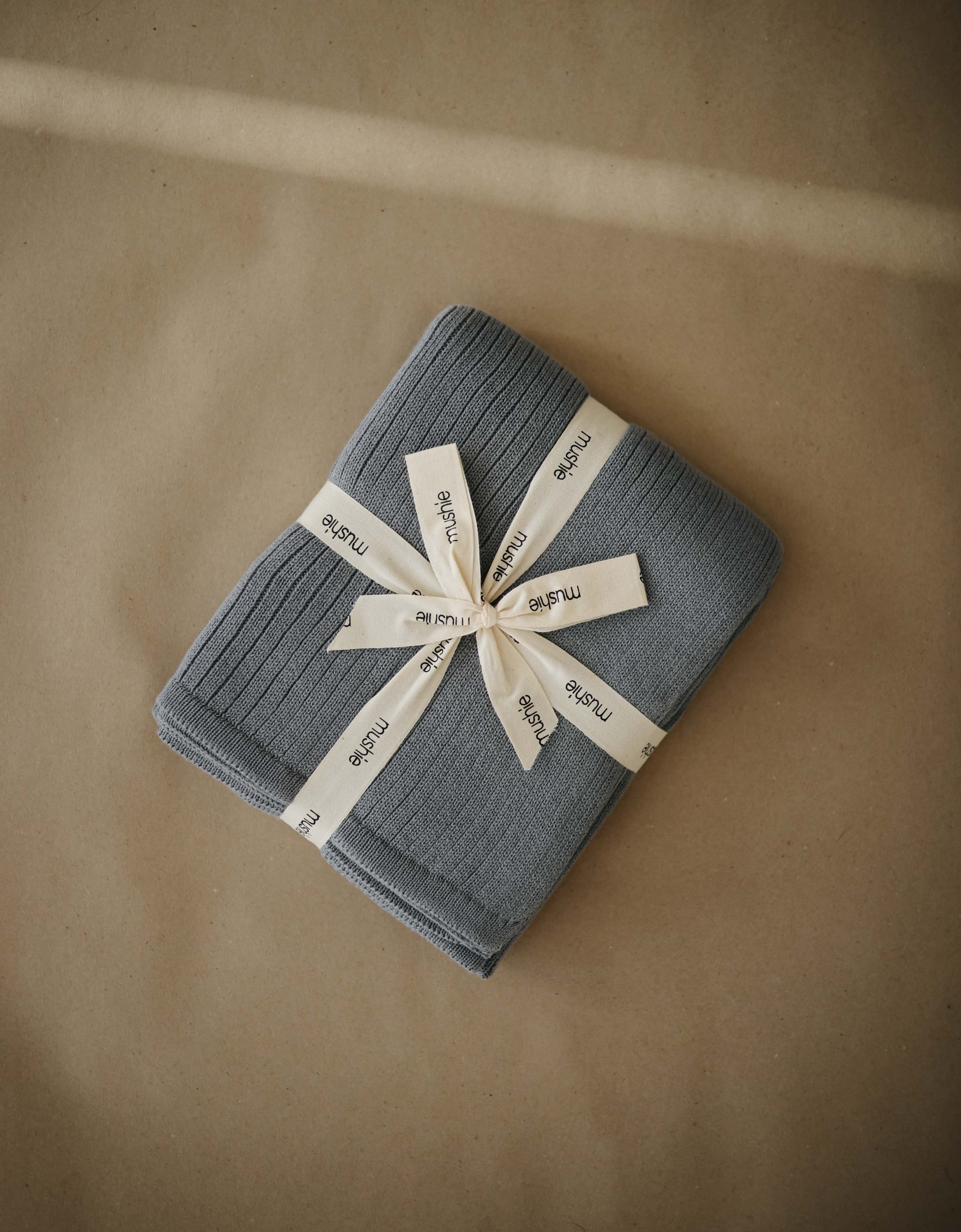 Mushie | Knitted Baby Blanket Ribbed - Gray Melange