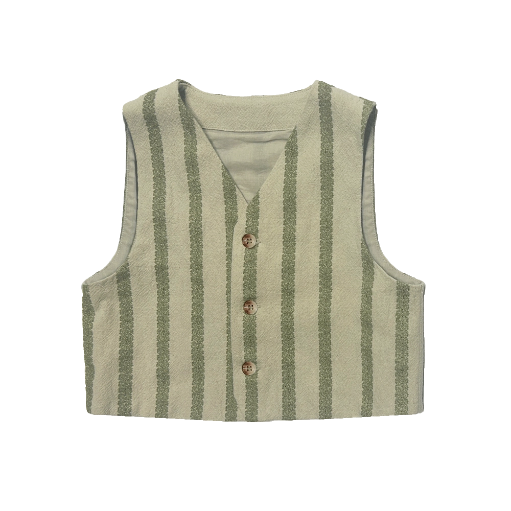 A little vest, a lot of charm! The Shortan Gilet is the perfect addition to every mini wardrobe. With its classic silhouette, button fastening through the front, and timeless stripe design, it has just the right dash of character. Ideal for layering over blouses or under jackets, this piece brings playful versatility to every little look.