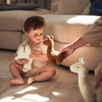 Looking for a cute and cuddly stuffed toy that your child will love? Our llama plushie is the perfect choice! Made with soft and cozy teddy fabric, this stuffed animal is perfect for snuggling and playing with. It provides comfort and soothes your baby's little problems. The llama is designed to stand firmly on its legs, making it a beautiful accessory for your baby's room. Pair it with other stuffed toys or plushies for a cozy setup. Shop our collection of plush toys today and give your child a new best friend!