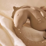 Discover the great rubber toys for little ones: sturdy, soft and safe. It offers a pleasant chewing experience and is easy to keep clean. Go for rubber and give your little one the opportunity to explore safely! This teething ring in the shape of a horse with the colour Biscuit helps with the development of the jaw and can reduce the pain of teething, while also providing entertainment.