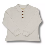 - Plain white long sleeves polo with front buttons